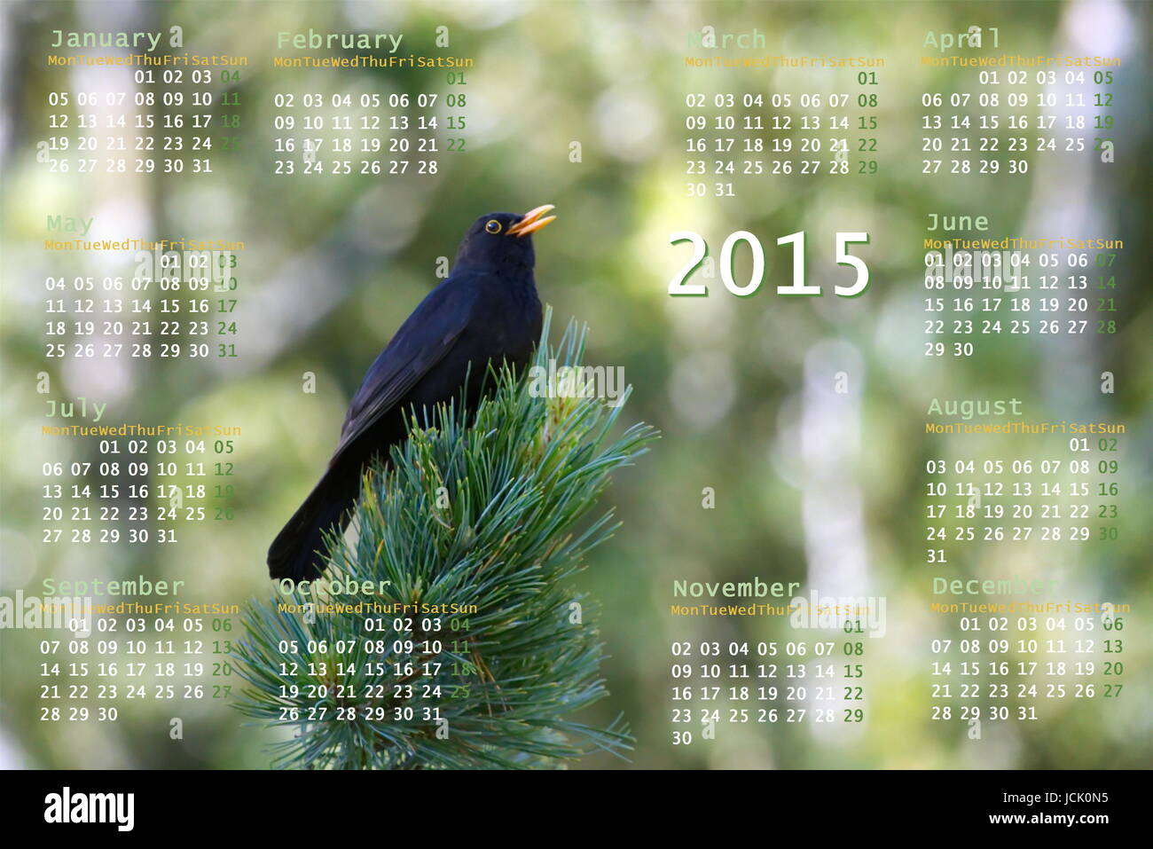 European 2015 year calendar with black bird on a branch Stock Photo Alamy