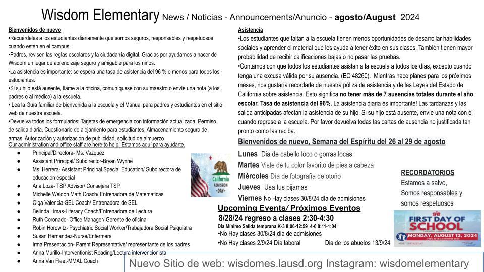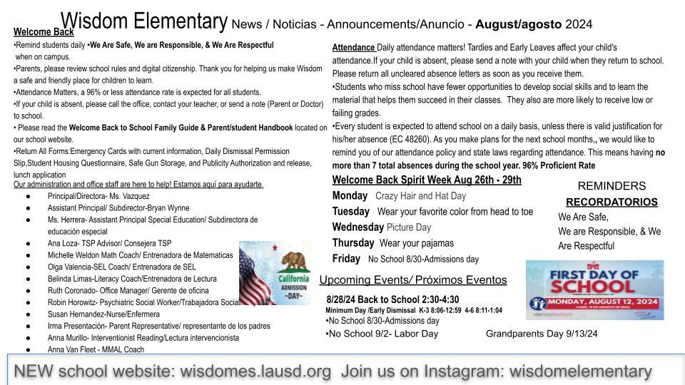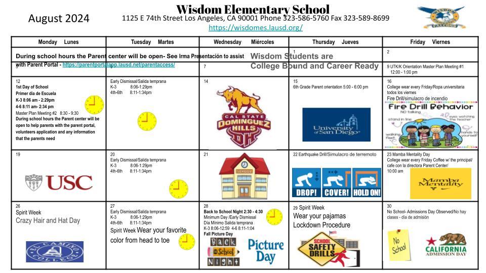 School Calendar School Calendar Wisdom Elementary