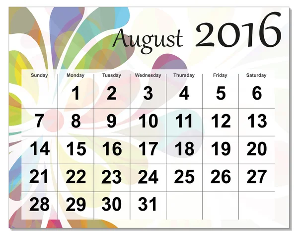 August 2016 Monthly Calendar Stock Illustration Download Image Now