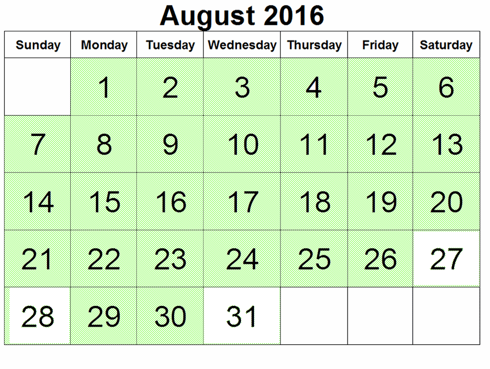 2016 Monthly Blank Calendar: August 2016 Printable Calendar Template