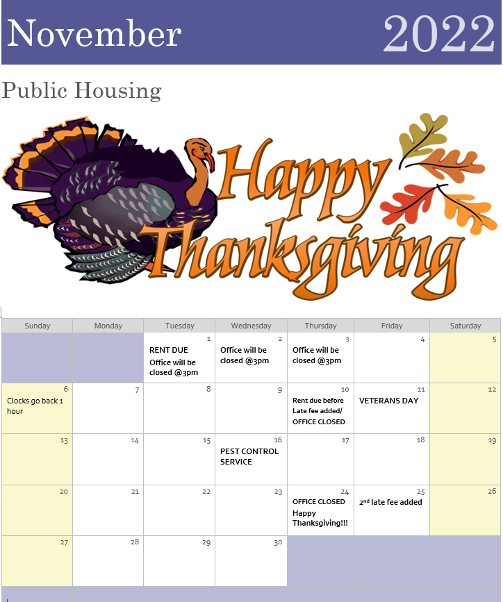 November Calendar (11/03/2022) News Enterprise Housing Authority