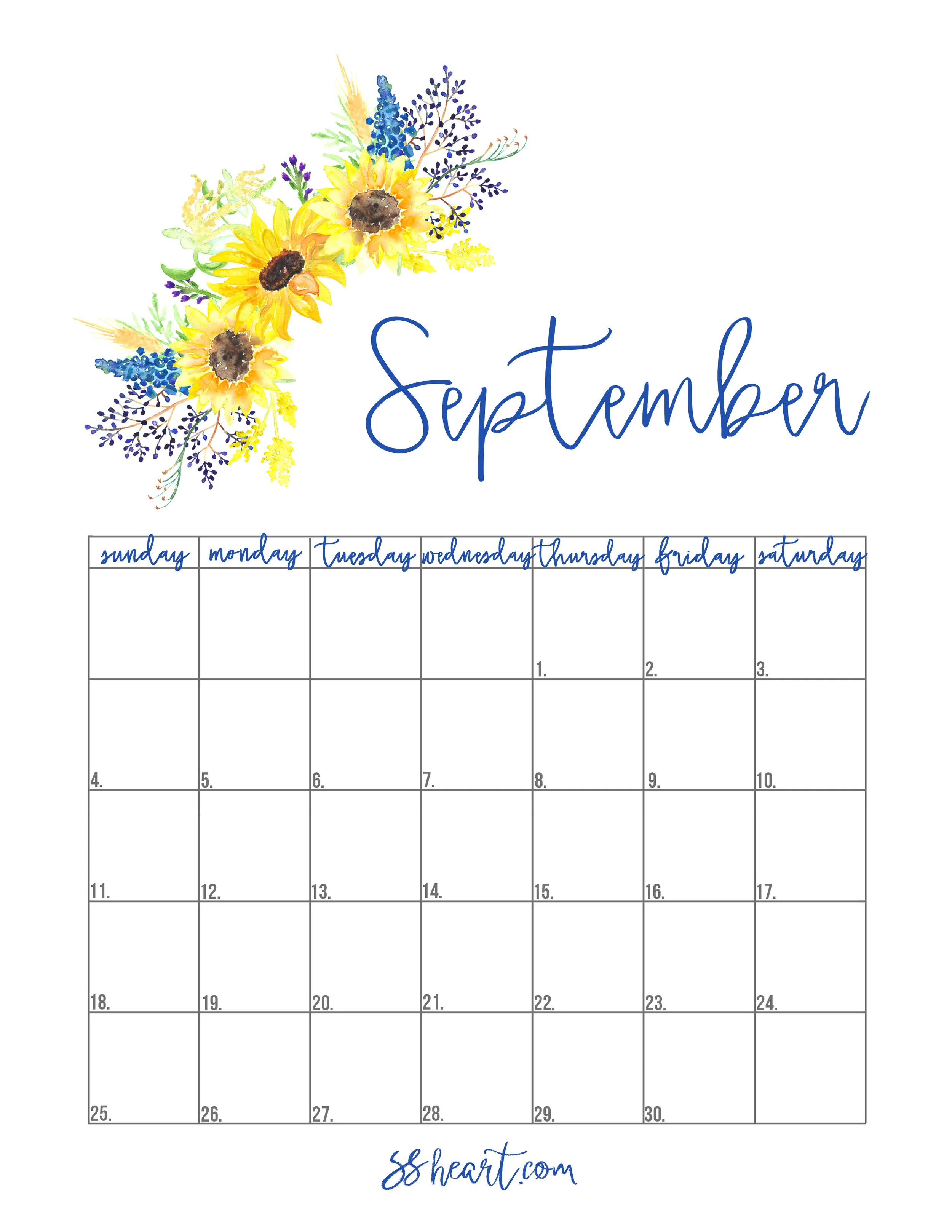 PRINTABLE SEPTEMBER 2016 CALENDAR SSHEART
