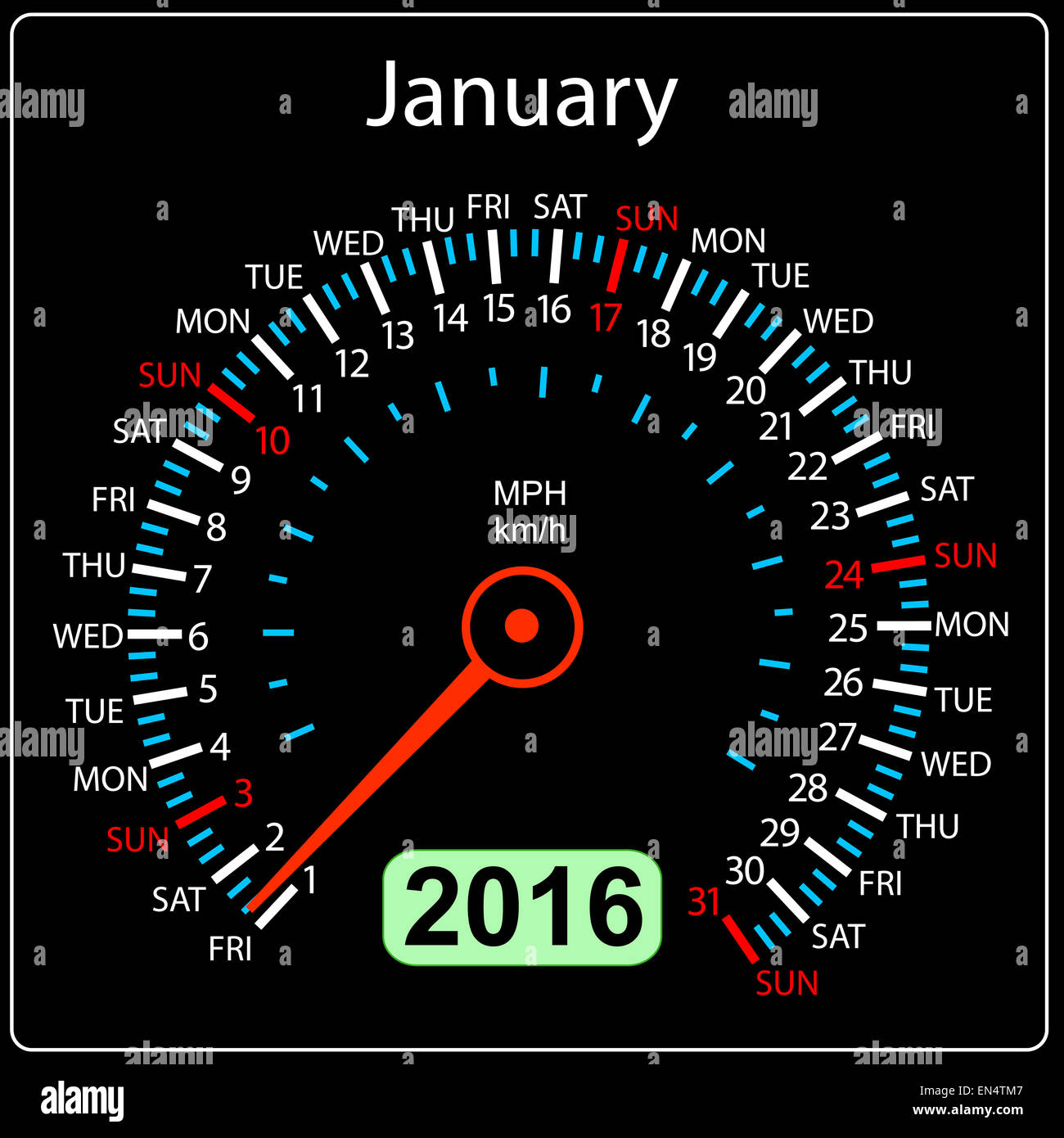 2016 year calendar speedometer car January Vector illustration Stock