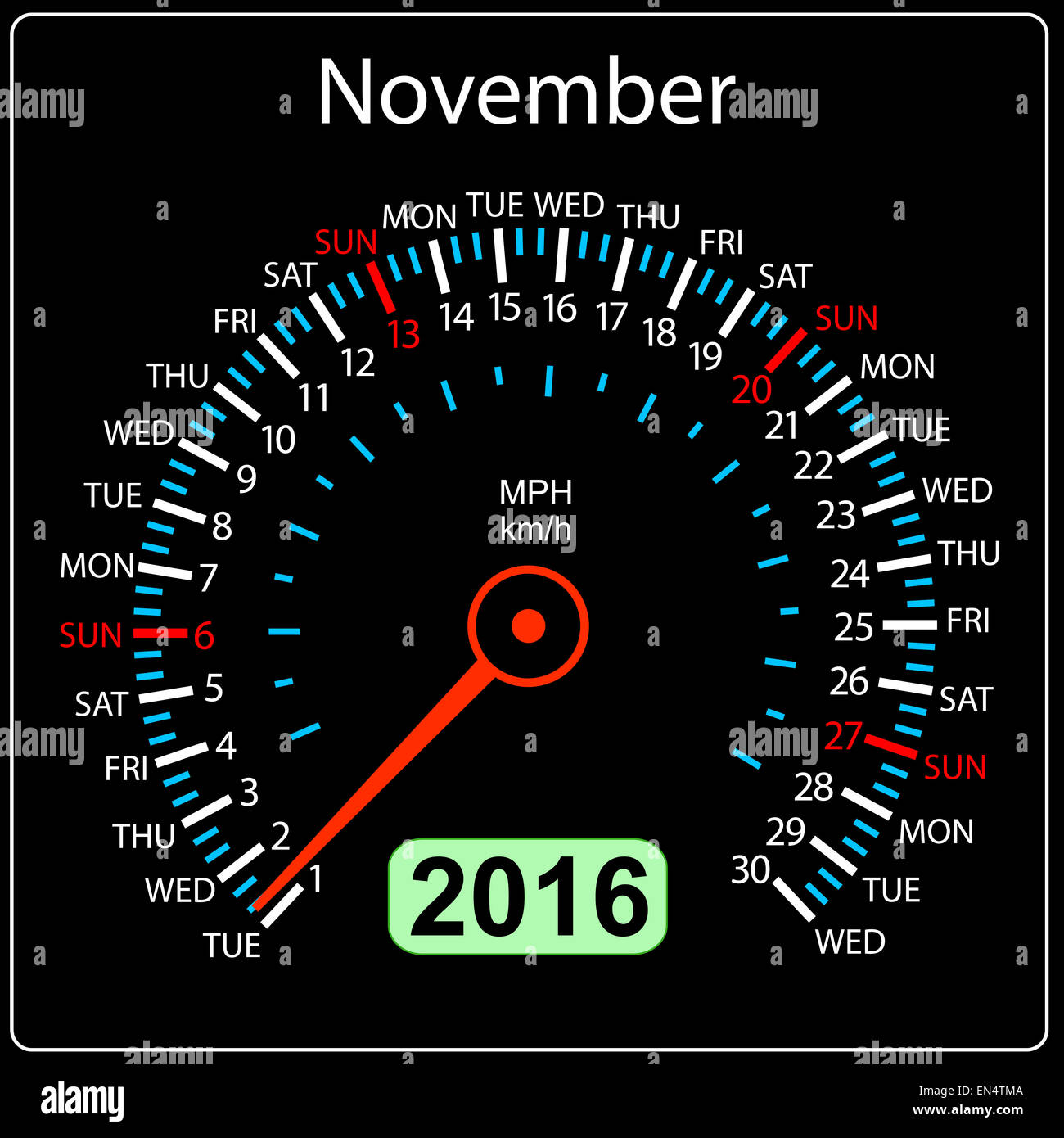 2016 year calendar speedometer car November Vector illustratio Stock