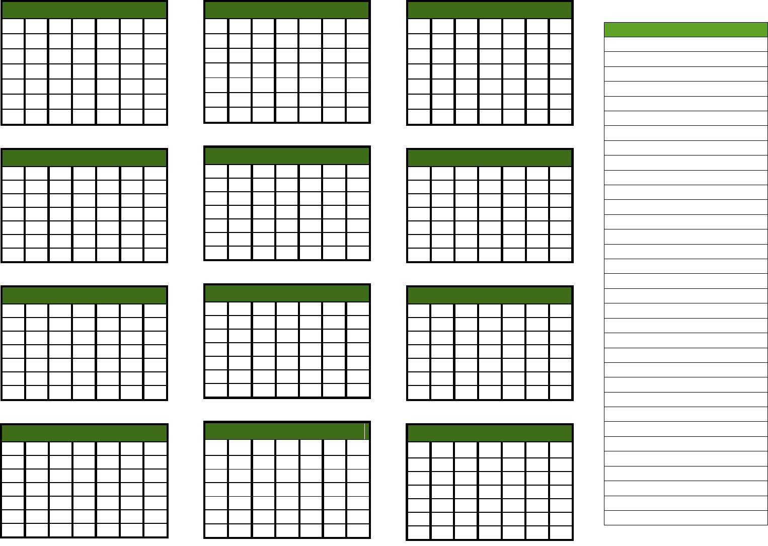 2016 Yearly Calendars with Holidays Activity Shelter