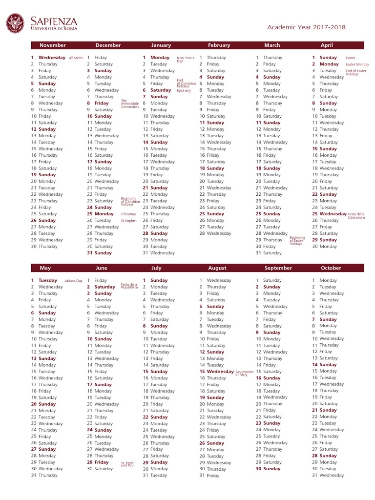 2017 2018 Academic Calendar PDF Holidays Observances