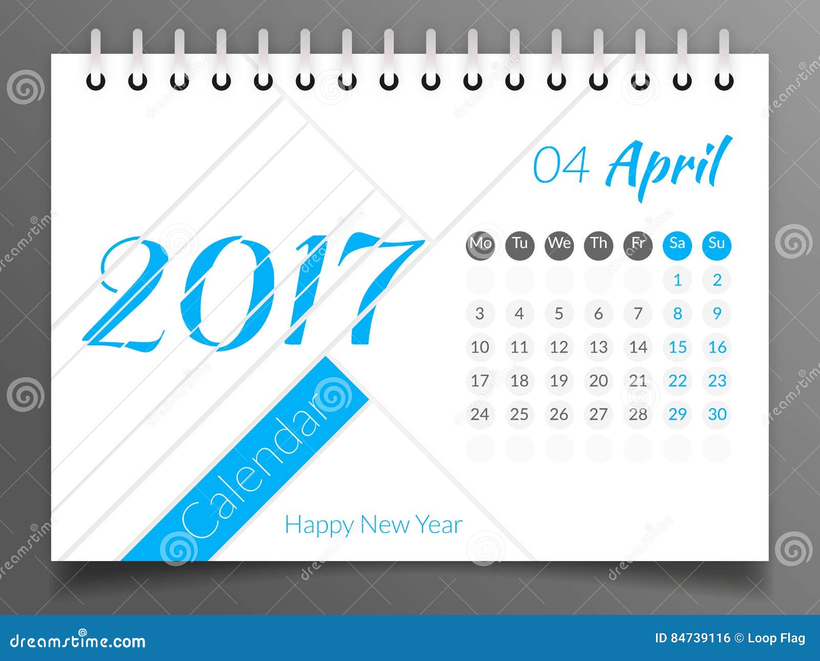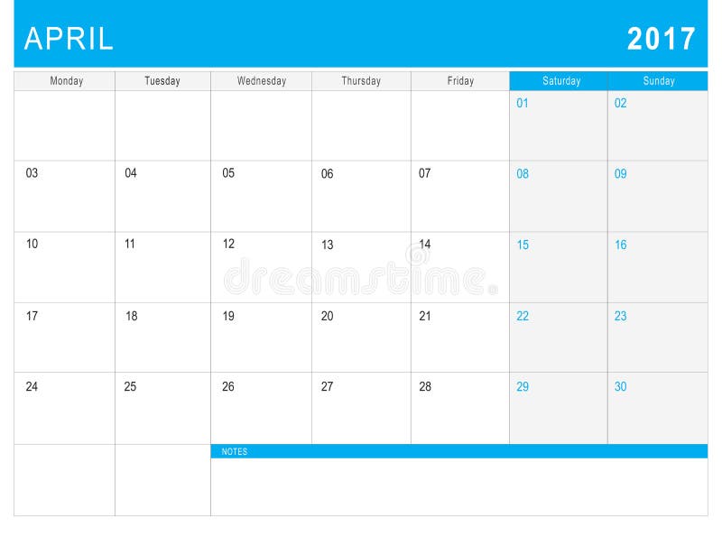 April 2017 Calendar 2017 stock vector Illustration of note 84739116