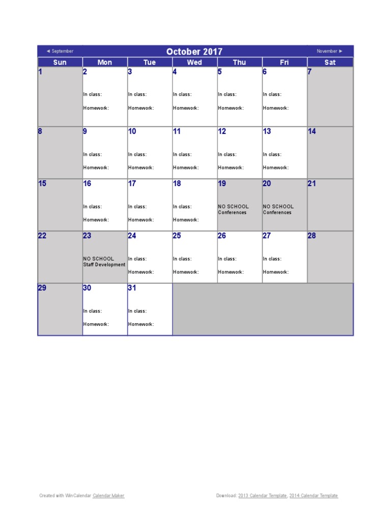 free calendar October 2017 Printable Blank Calendar org