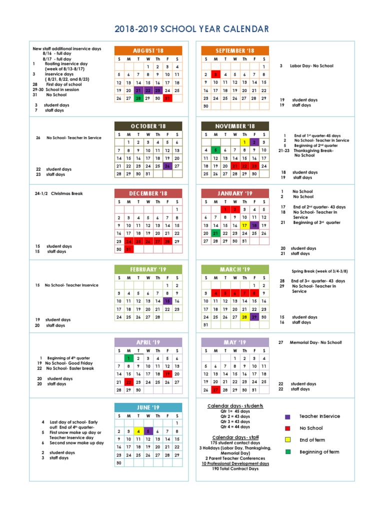 Year Calendar 2018 2019 School Year Calendar 2018 2019 Near North