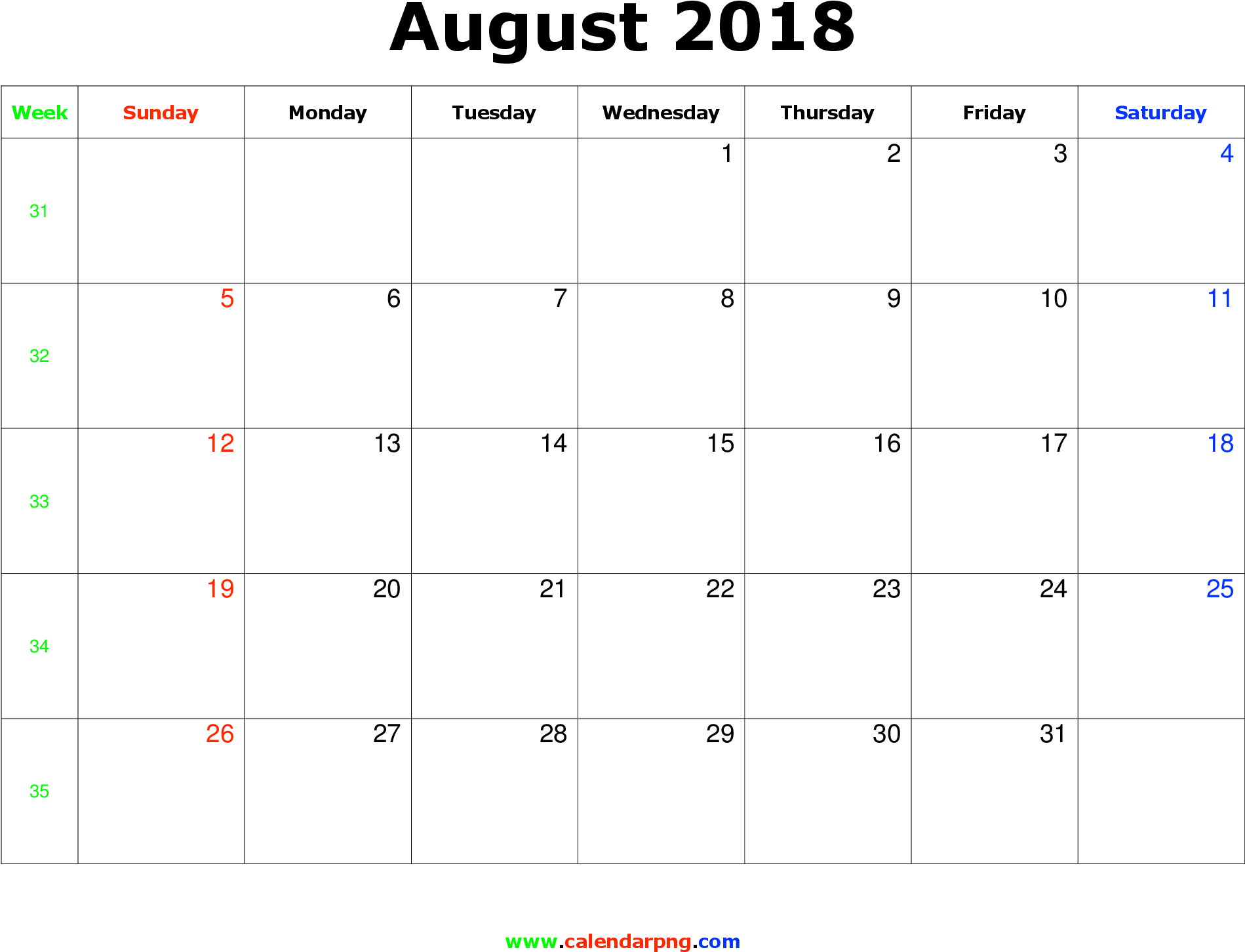 Printable August 2018 Monthly Calendar with Holidays for Canada