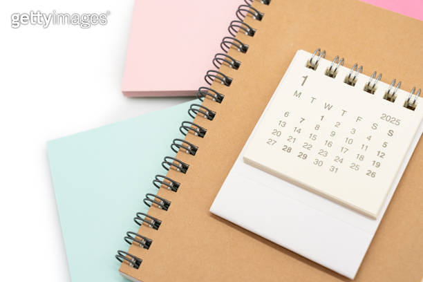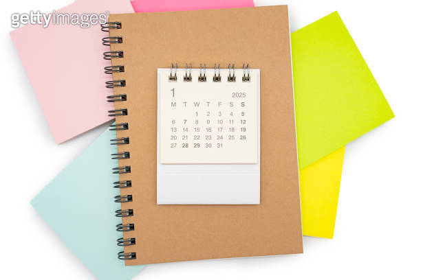 Simple desk calendar for JANUARY 2025 with office supplies Calendar