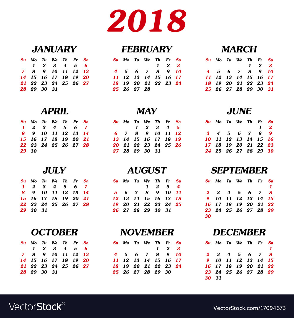 2018 Multicolored American Vector Calendarfull Year Stock Vector