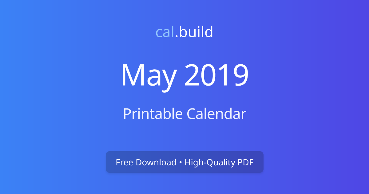 May 2019 Calendar Printable Free Download