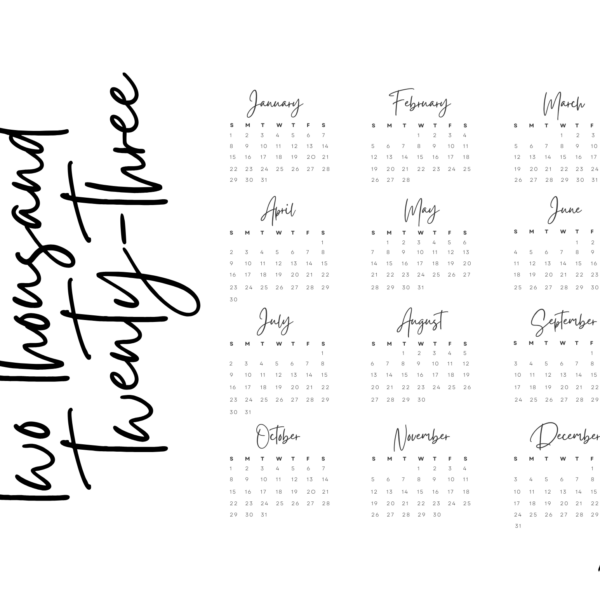 20223 Calendar Printable