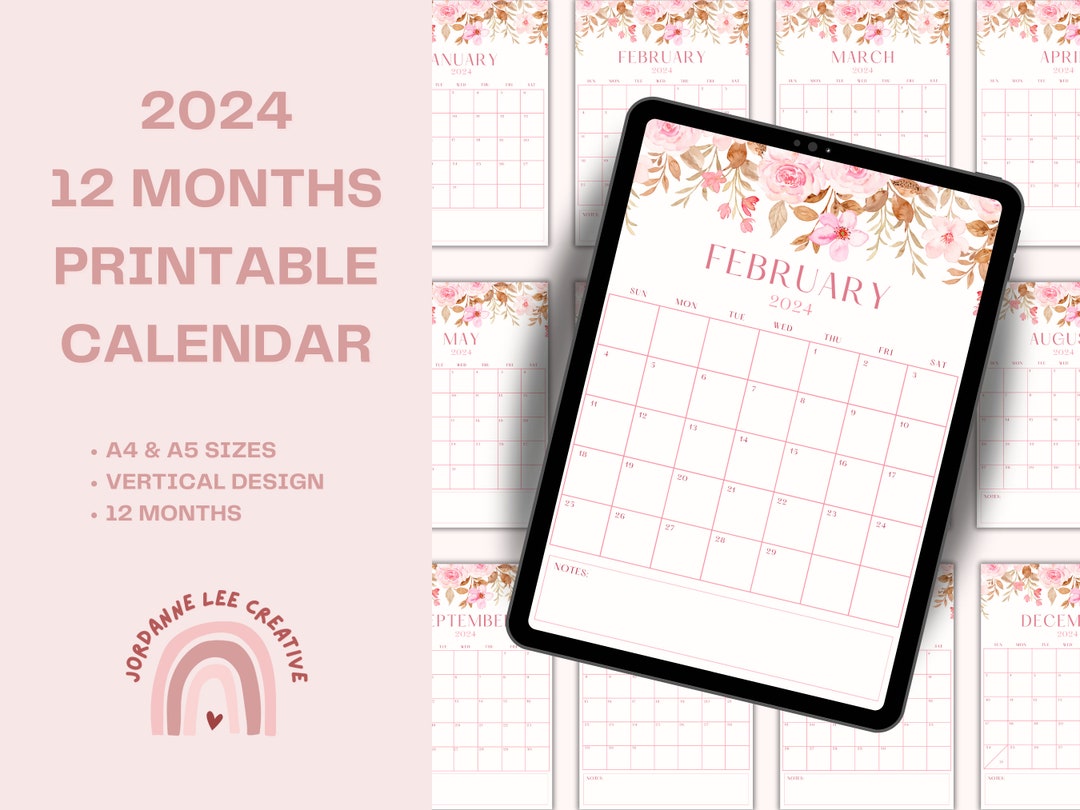 12 Month Printable Calendar 2024 Etsy