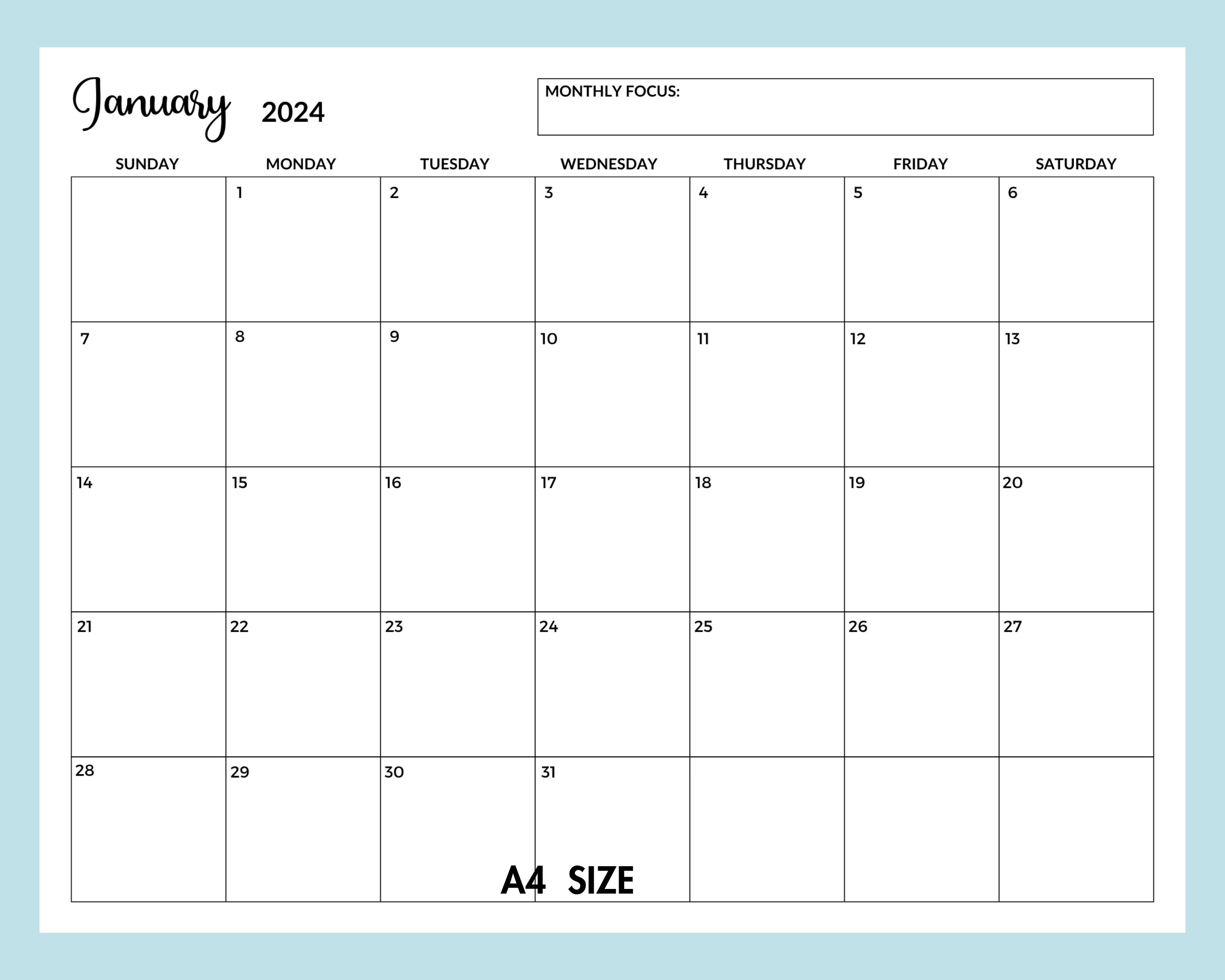 Monthly Calendar Planner 2024 12 Month Calendar Printable Etsy