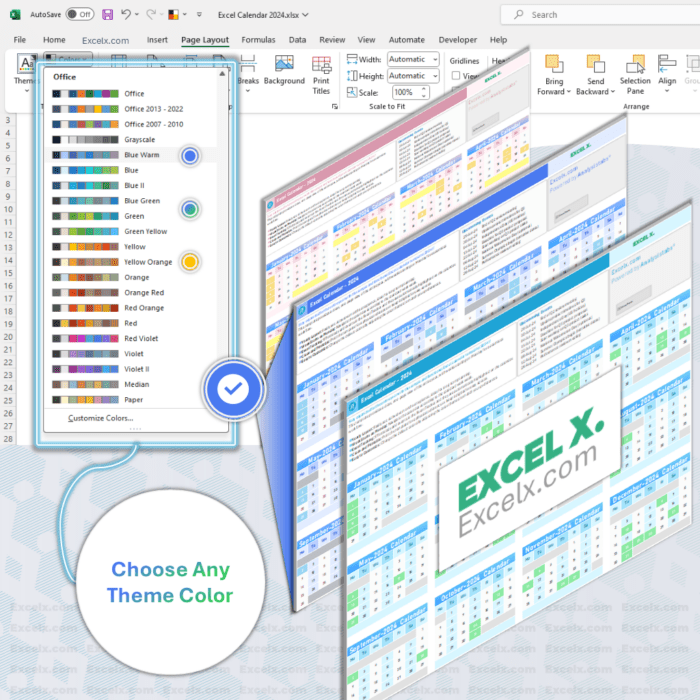 Excel Calendar 2024 with 24 designed layouts Free Download
