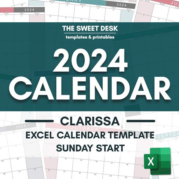2024 Calendar Template Excel Spreadsheet 24 Designs Calendar Etsy