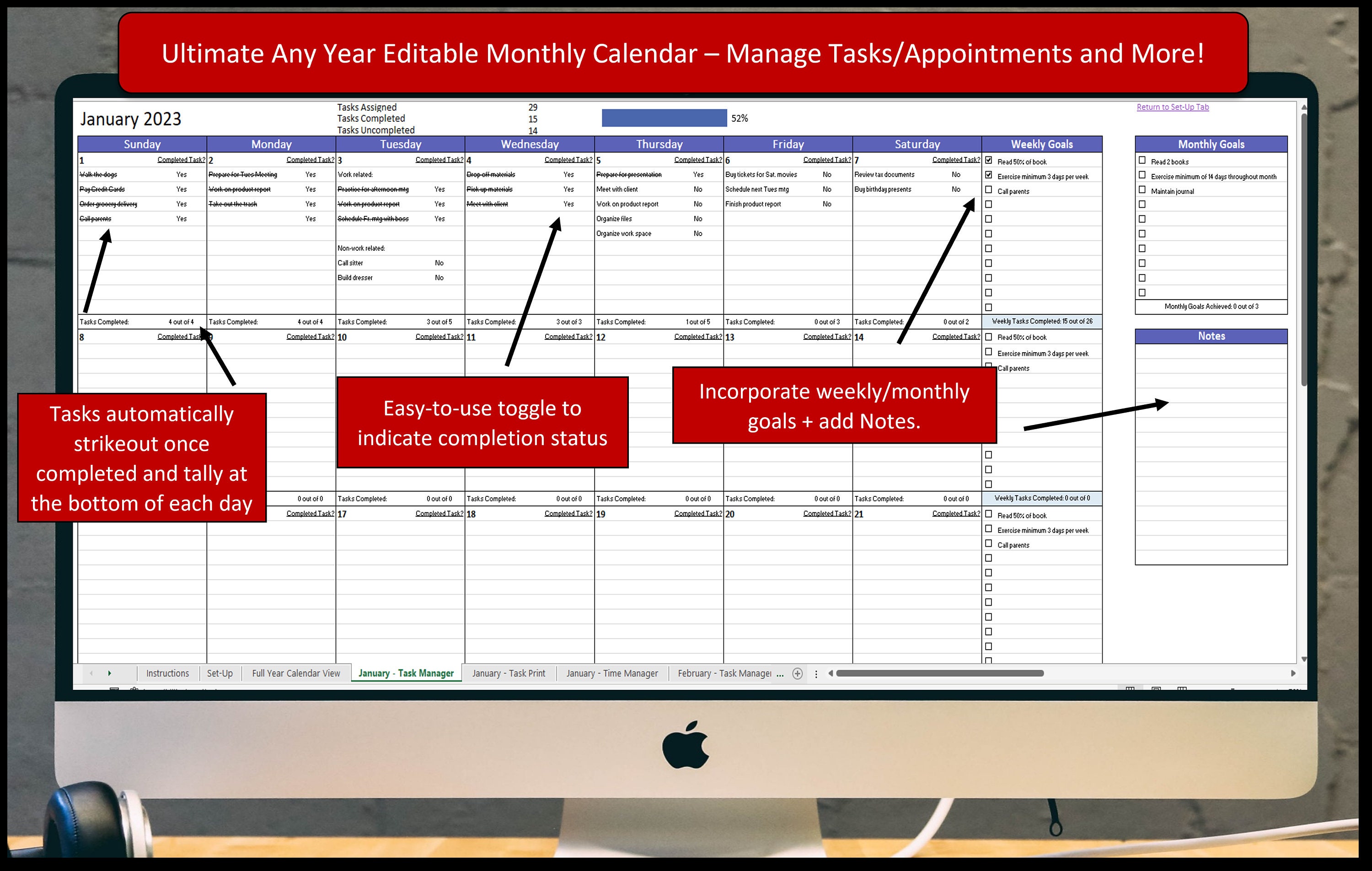 2024 Excel Calendar Any Year Calendar Editable Task Manager
