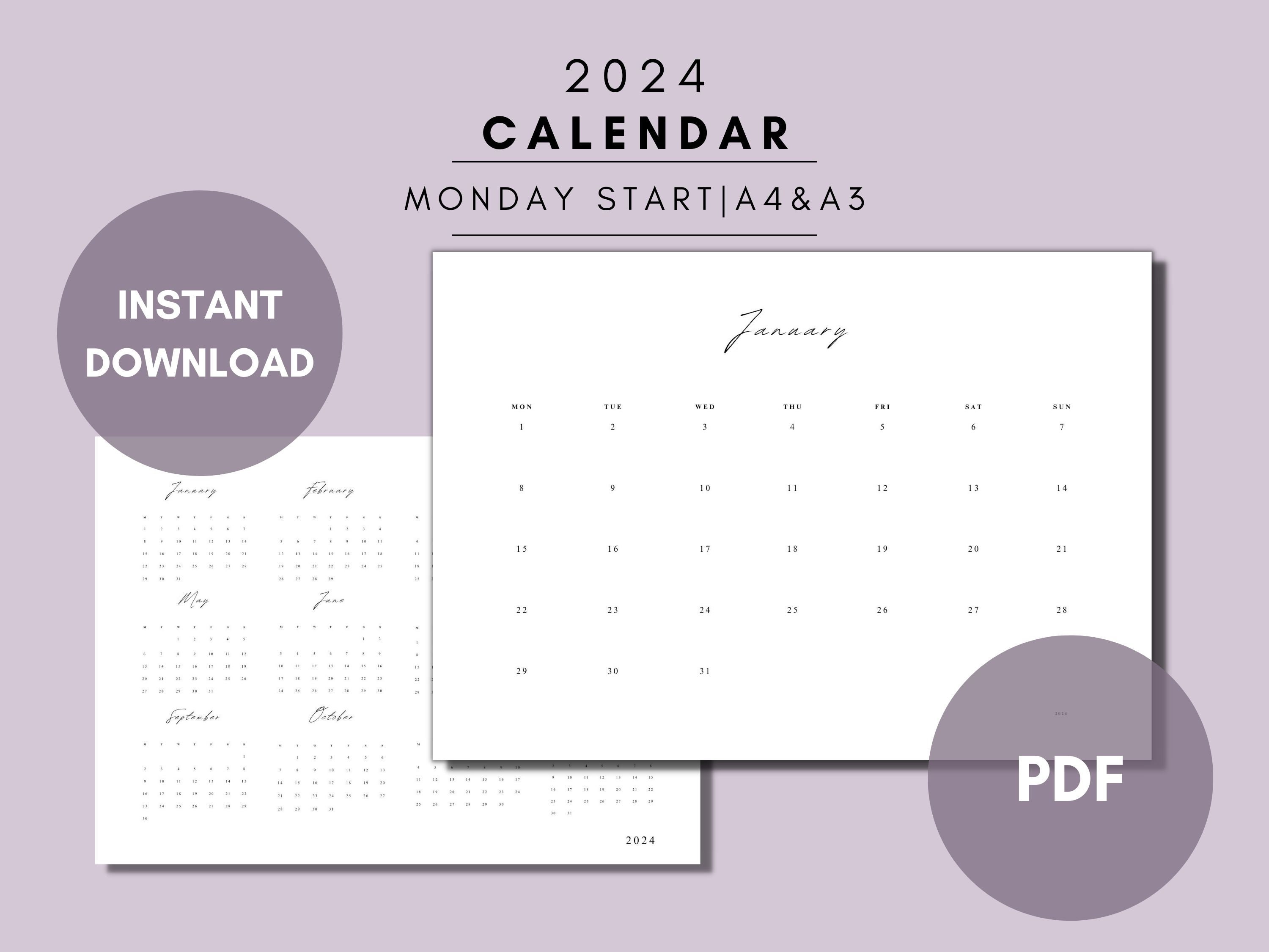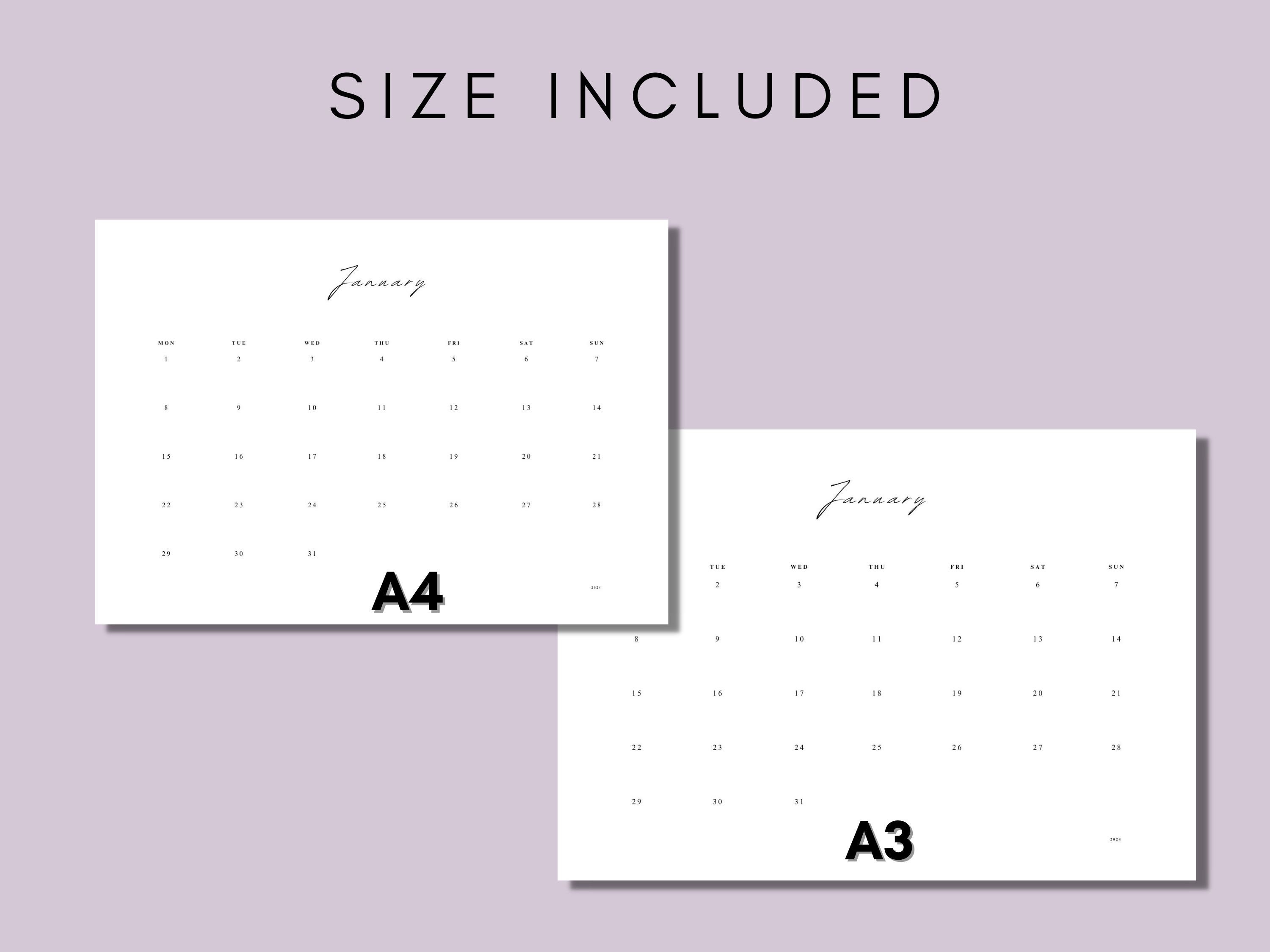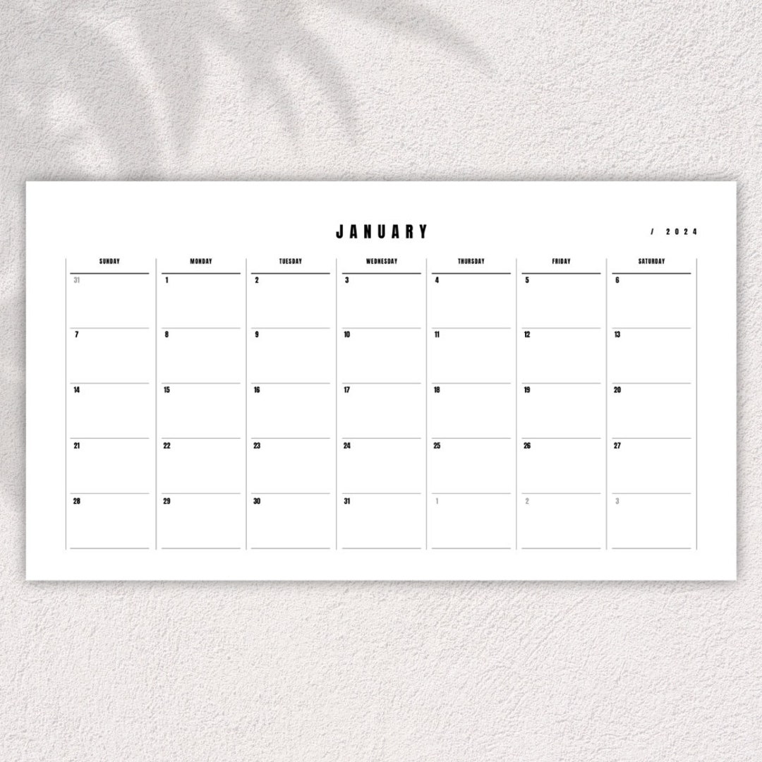 Printable 2024 Calendar Landscape Minimalist Monthly Etsy