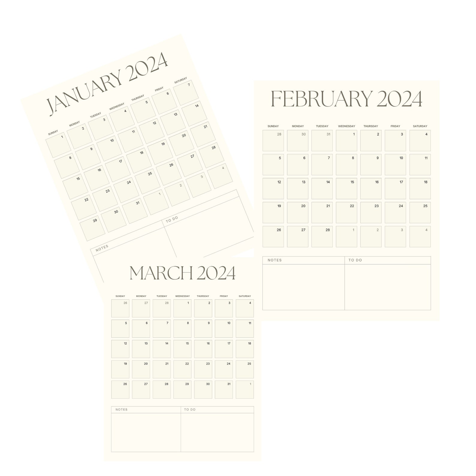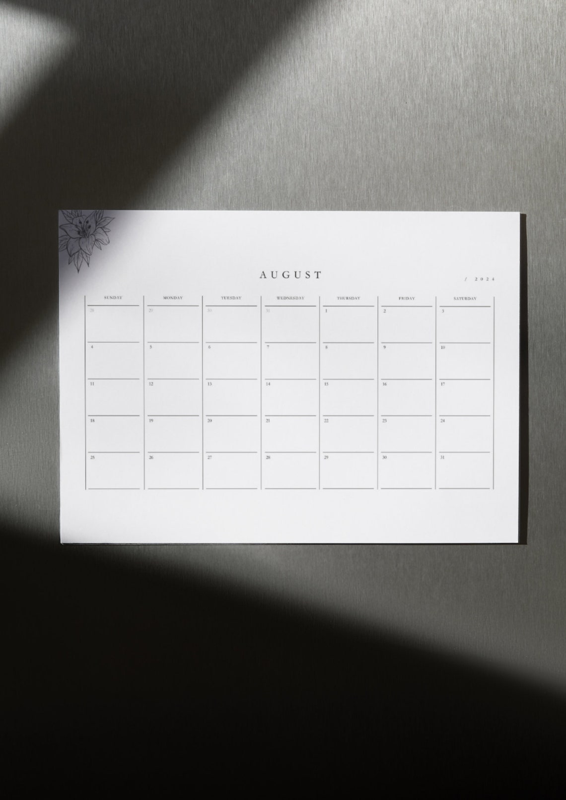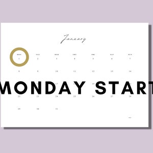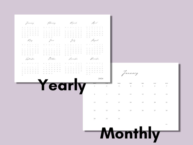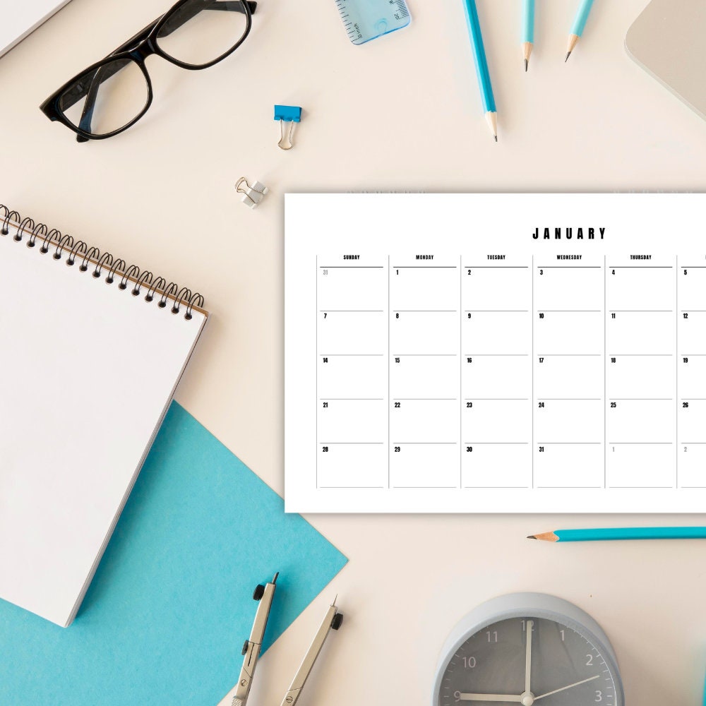 Printable 2024 Calendar Landscape Minimalist Monthly Etsy
