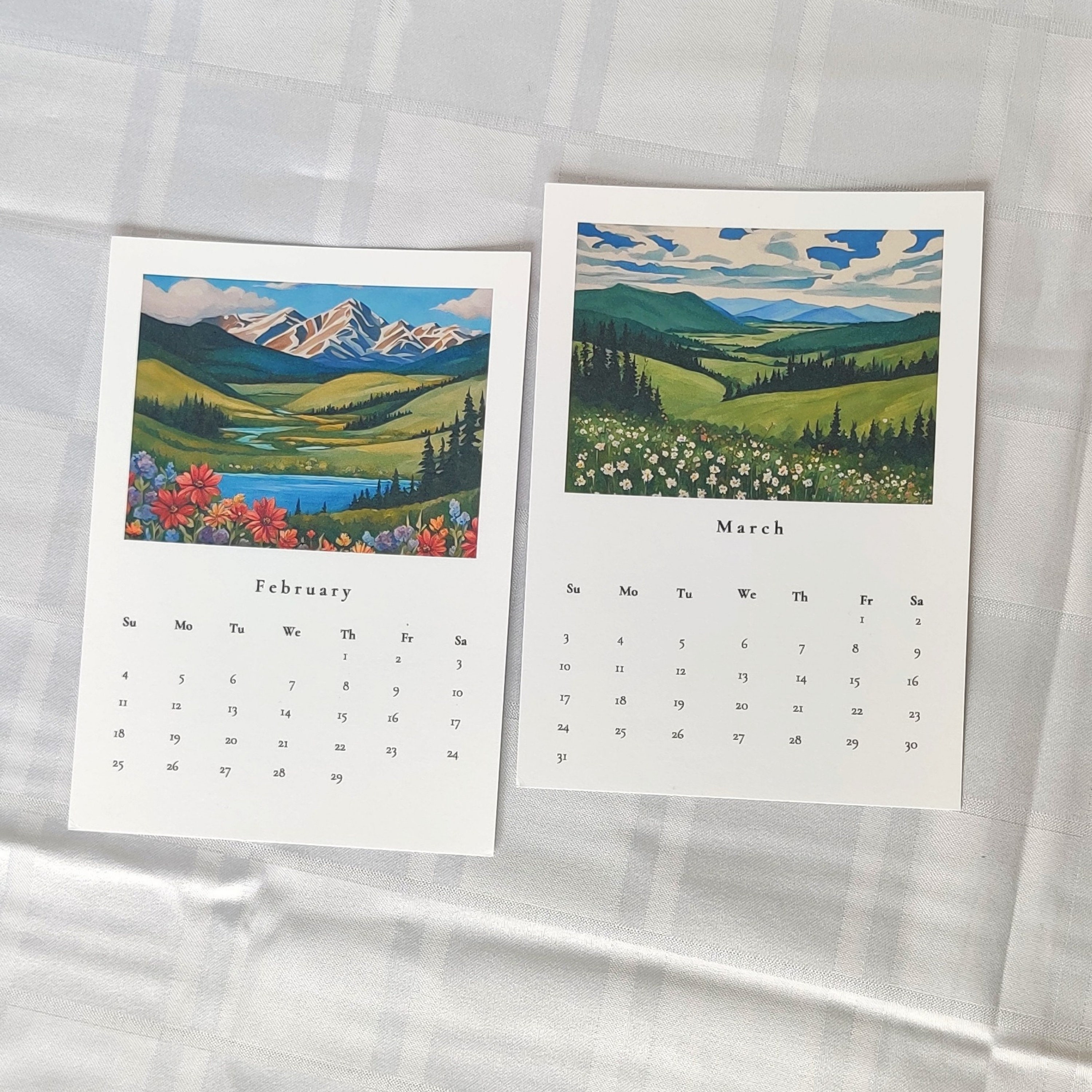 2024 Landscape Calendar Illustrated Art Calendar Refill Cards Etsy