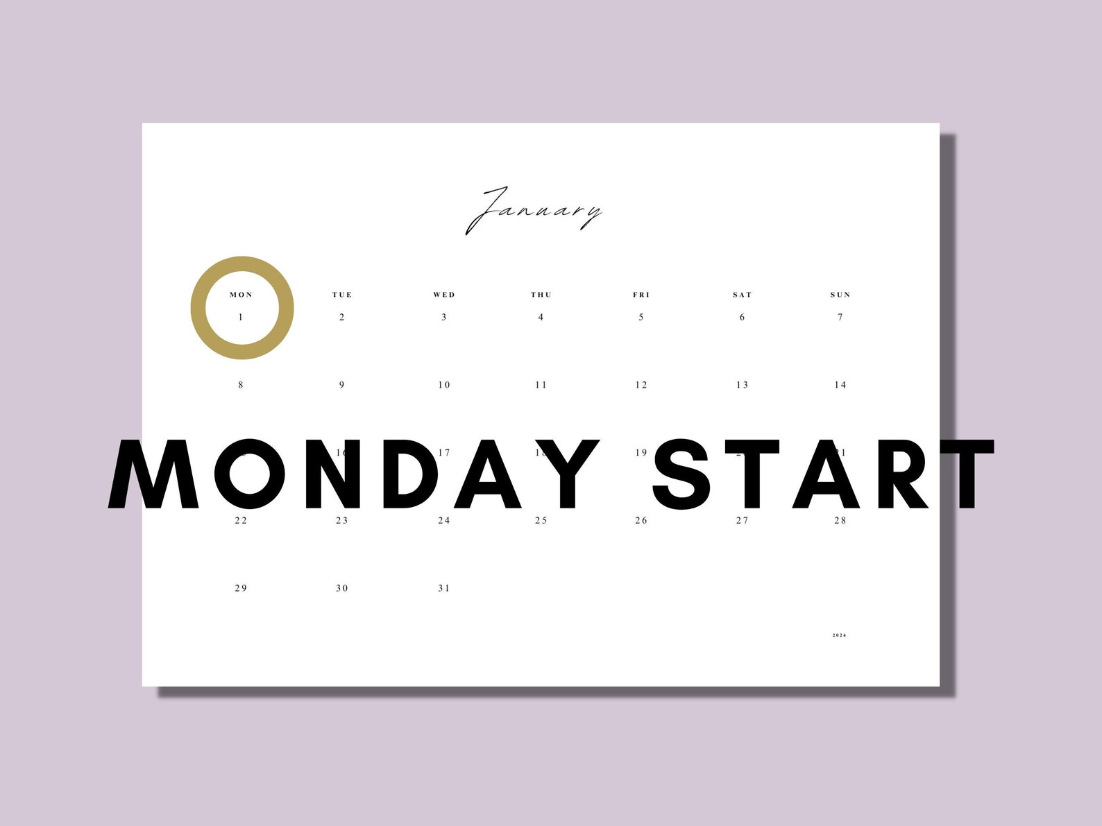 2024 Printable Calendar Landscape Minimalist Monthly Calendar 2024