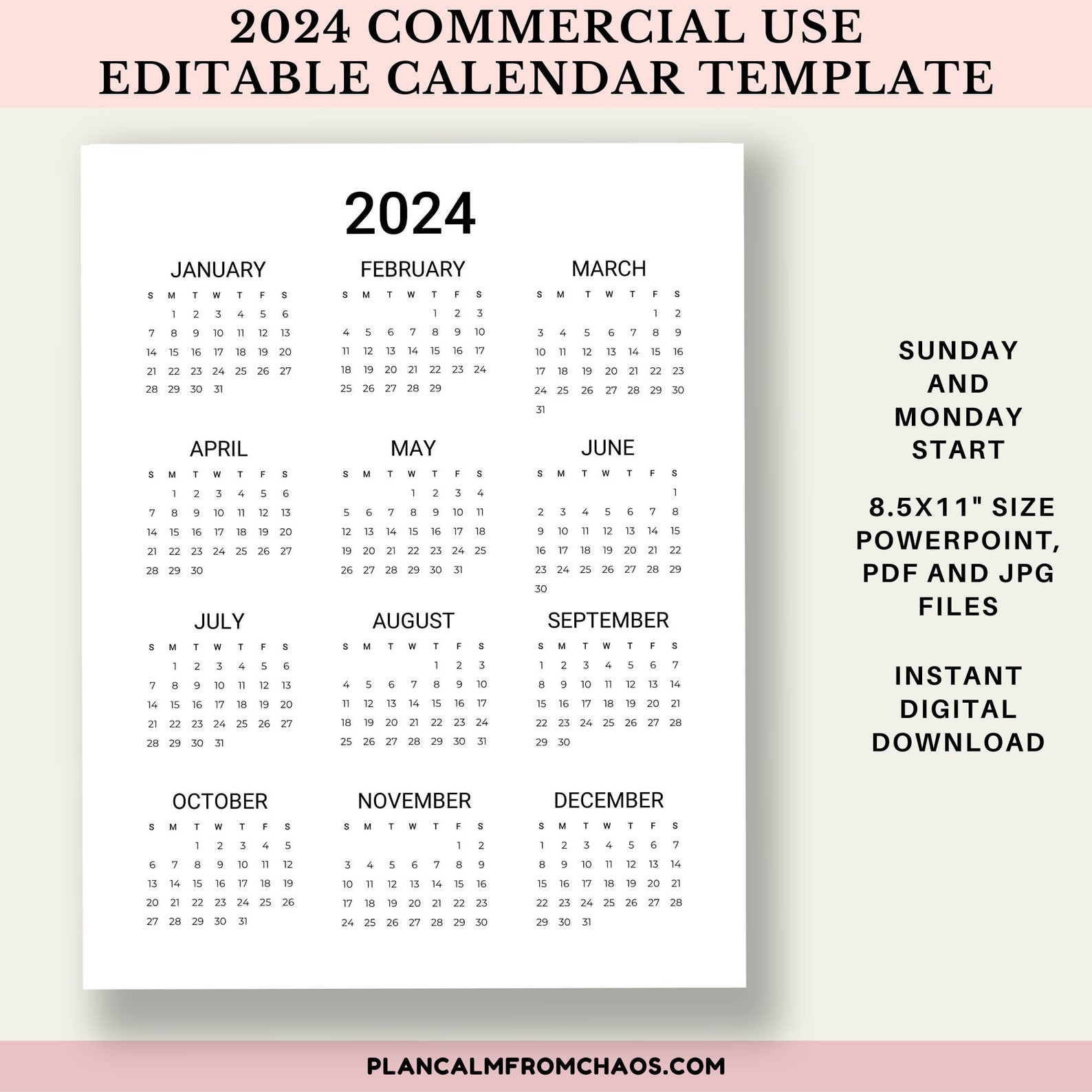 2024 Calendar Printable Template DIGITAL DOWNLOAD Commercial Use