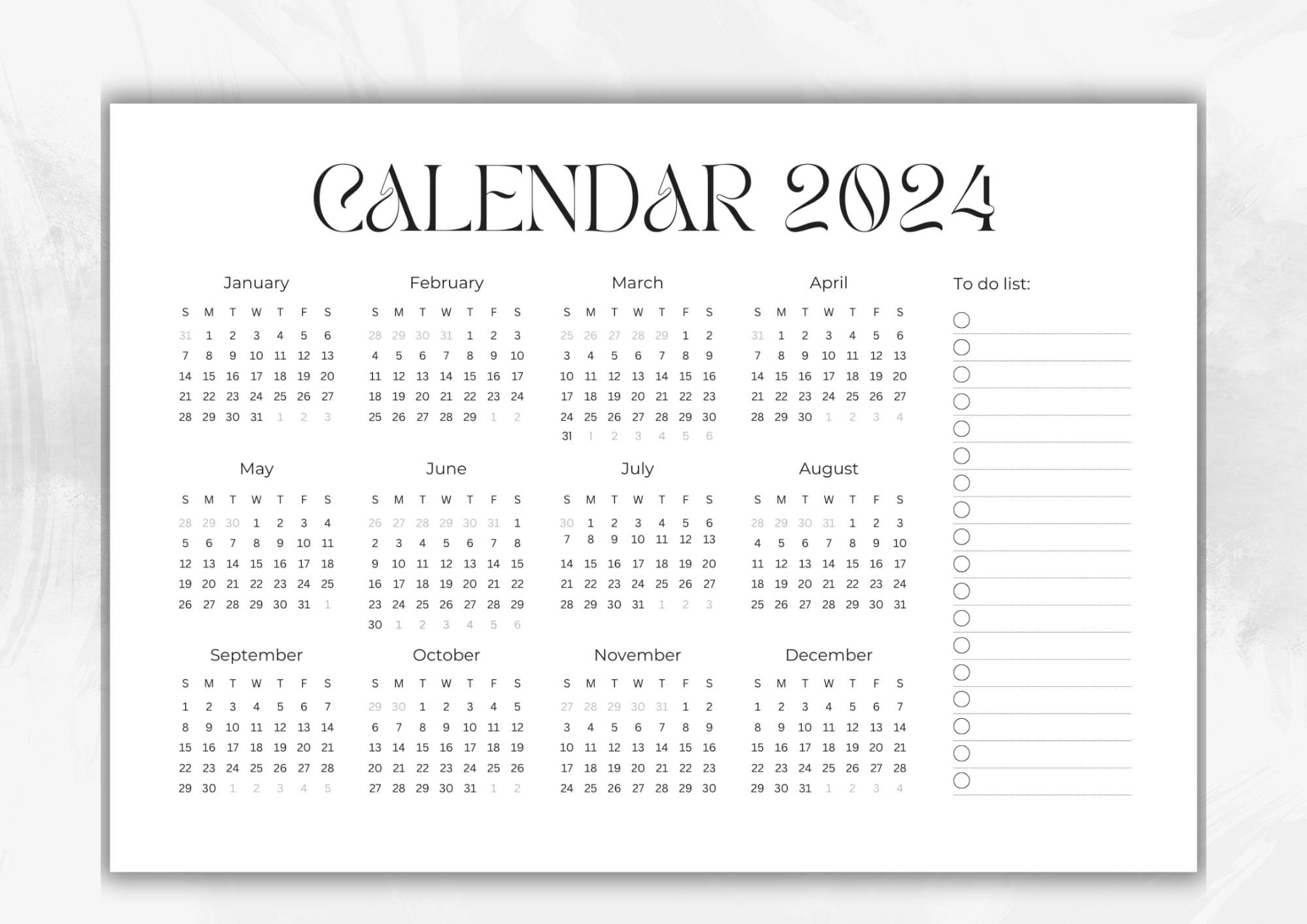 2024 Yearly Calendar Printable Calendar 2024 Calendar Digital