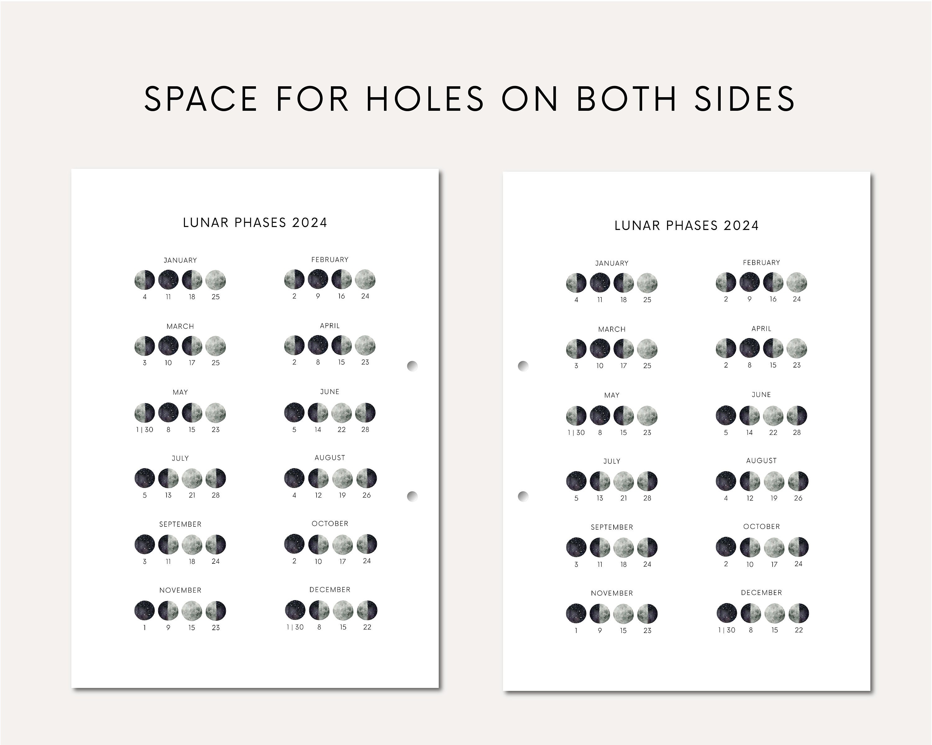 2024 Lunar Calendar Moon Phase Printable Digital Download PDF A4 Size