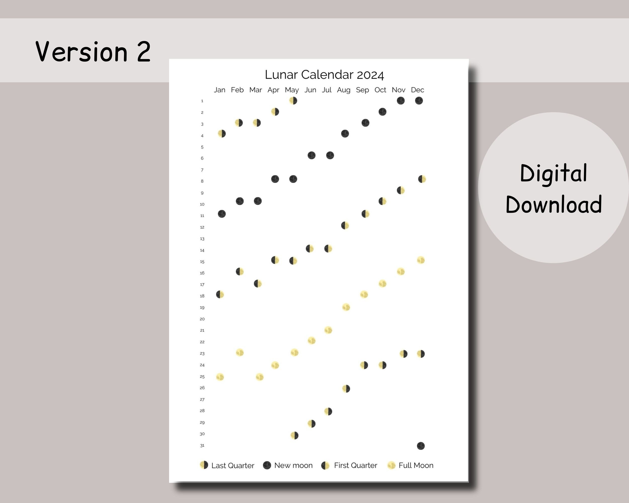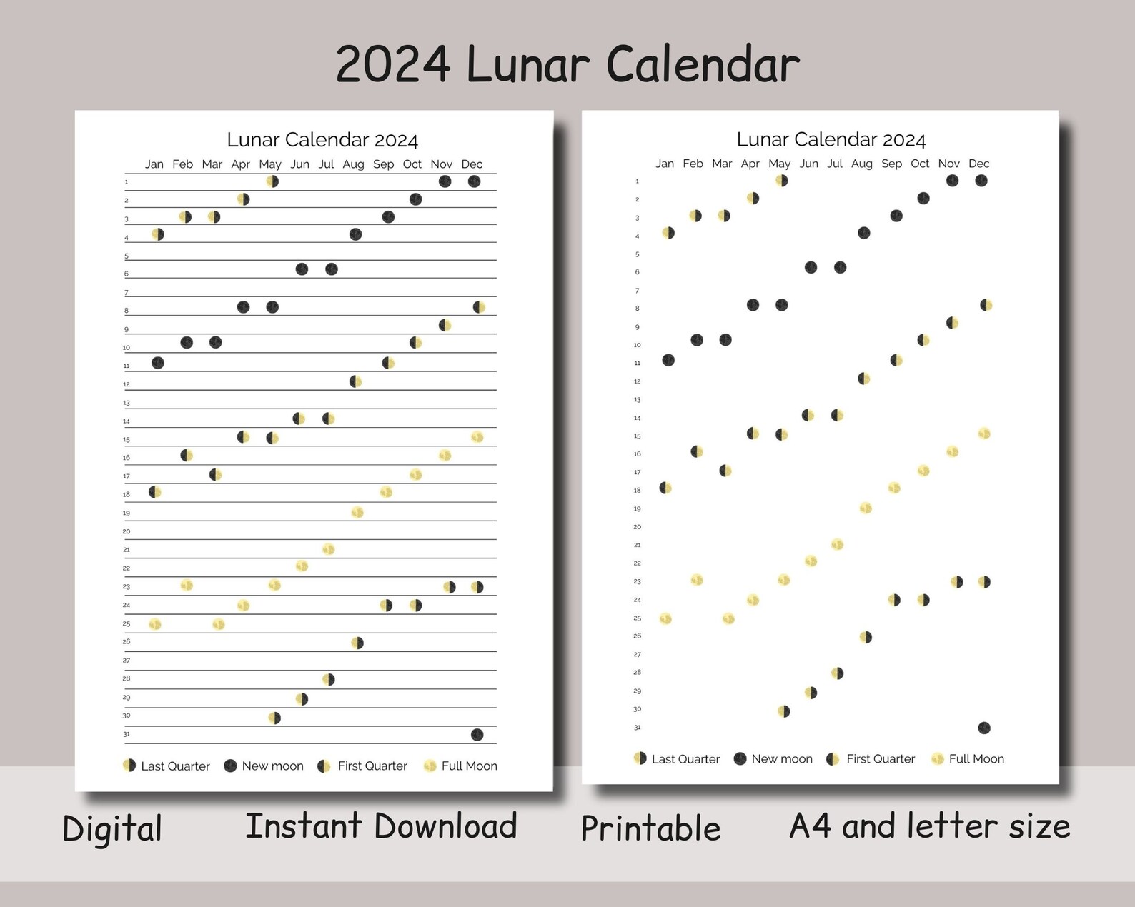 2024 Lunar Calendar Printable Moon Phases Calendar Etsy UK
