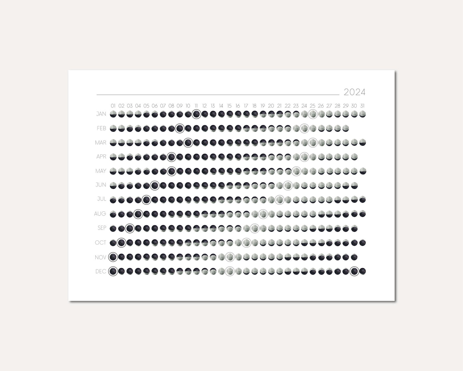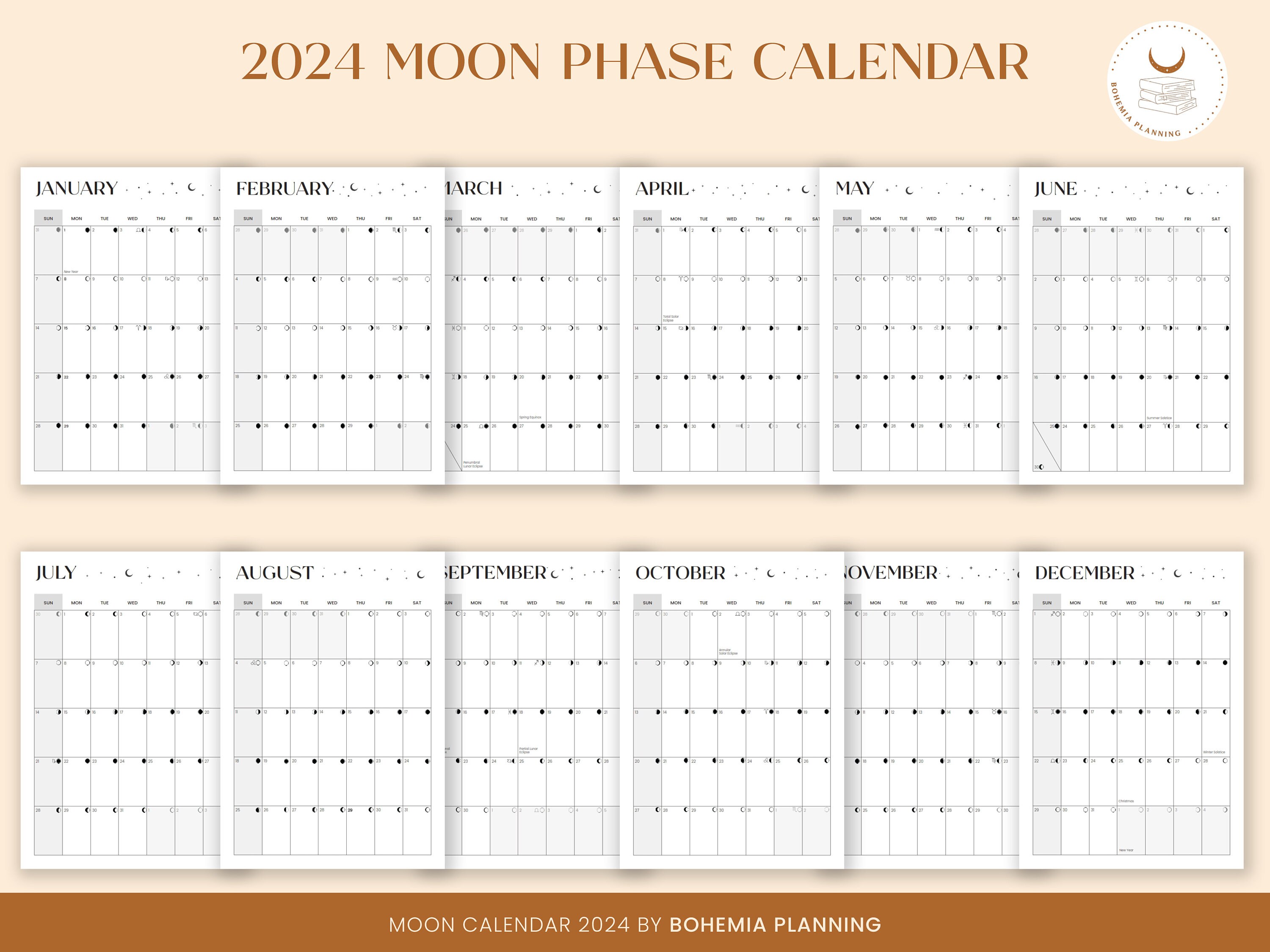Printable Moon Phase Calendar for 2024 Digital Printable Moon Phases
