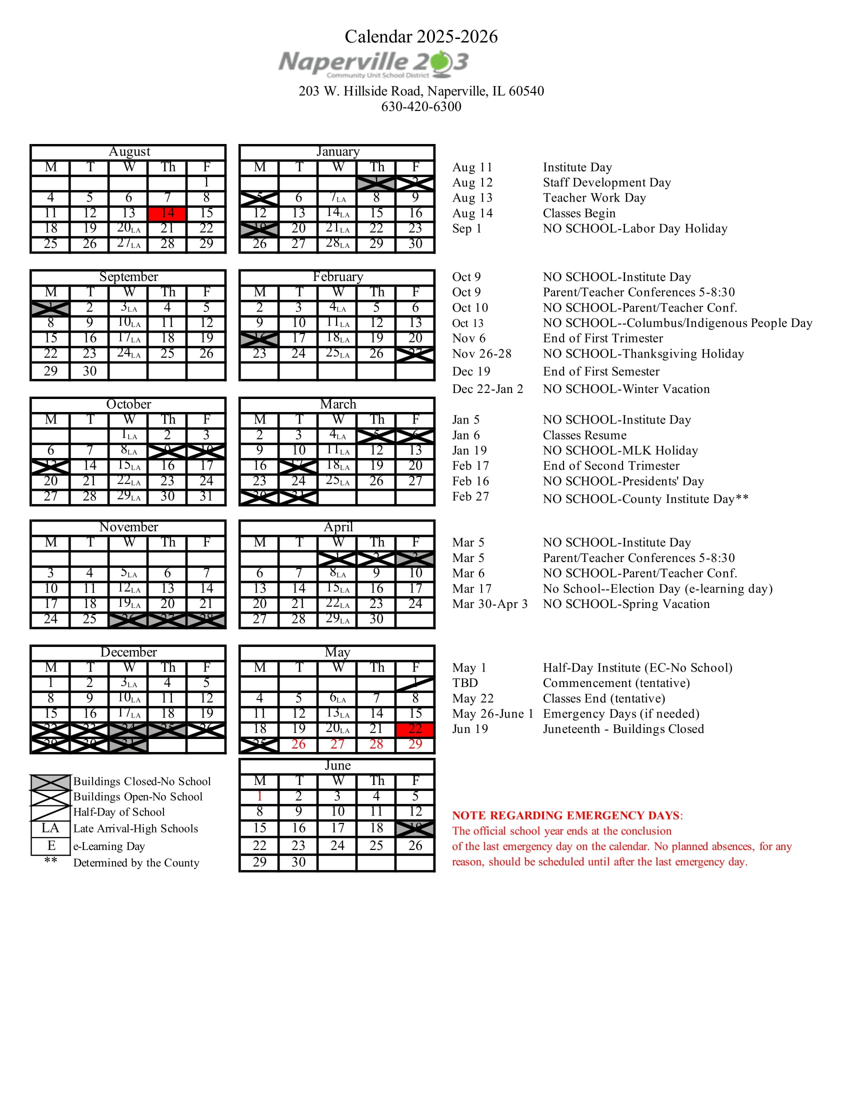 District 203 Naperville Calendar