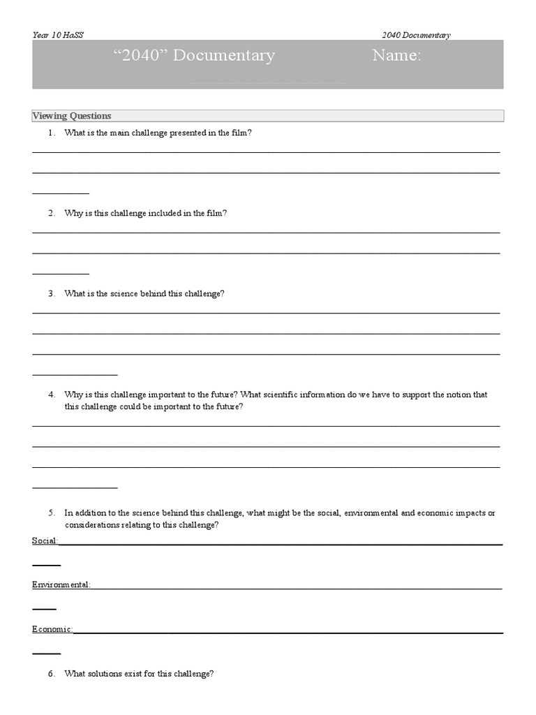 Here are some of the images for 2040 Documentary Worksheet that we found in our website database.