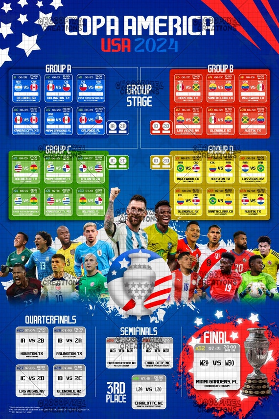 Copa America 2024 USA Soccer Wall Chart Calendar 20x30 Full Color☝️