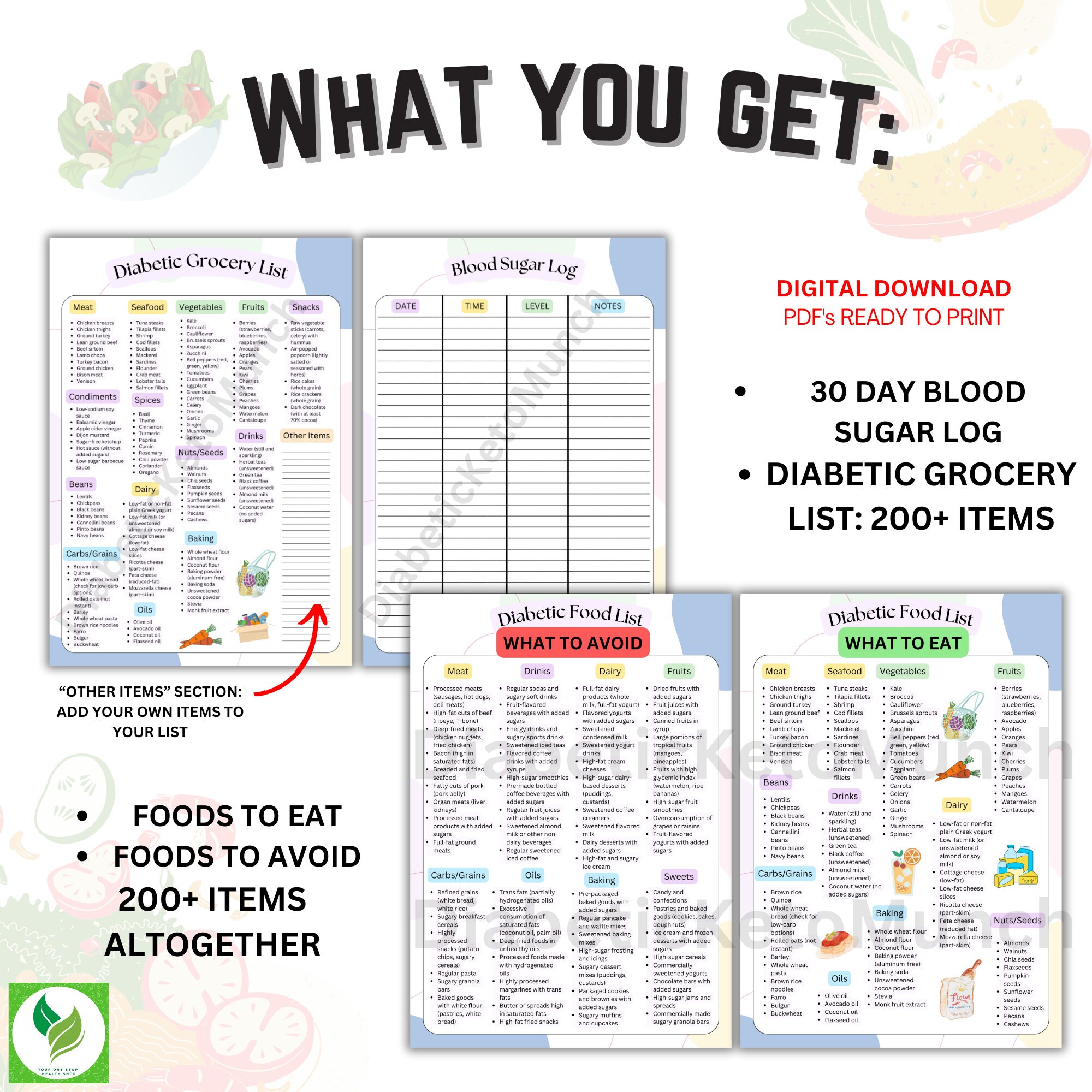 Diabetic Food List Printable Blood Sugar Log Type 2 Diabetes Grocery