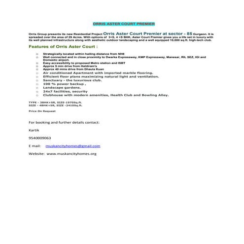 🏠 Orris Aster Court Premier Luxury Apartment Sector 85 Gurgaon