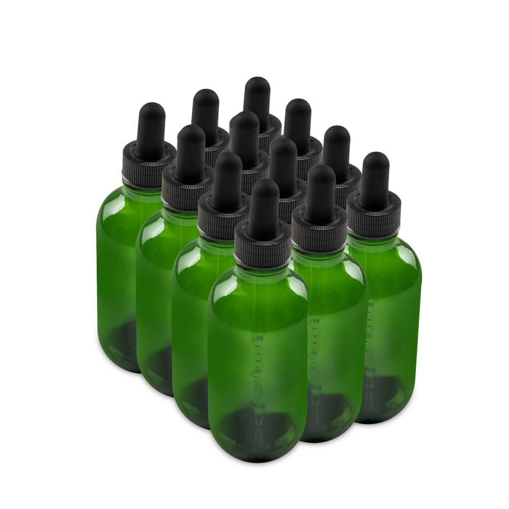 12 Pack 4 oz Glass Bottle with Dropper Green 22 400 Neck Finish