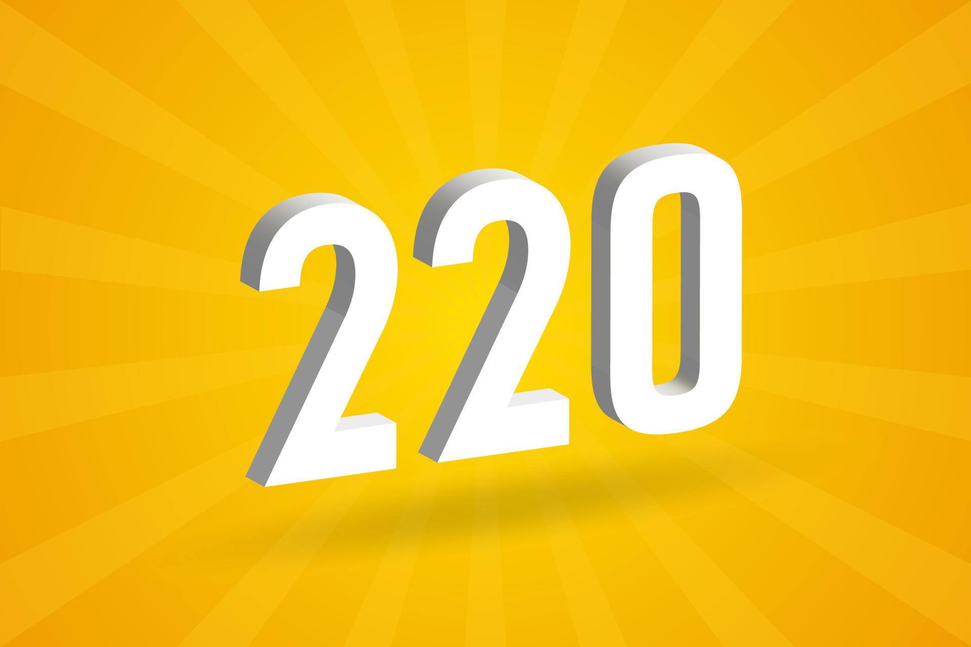 3D 220 number font alphabet White 3D Number 220 with yellow background