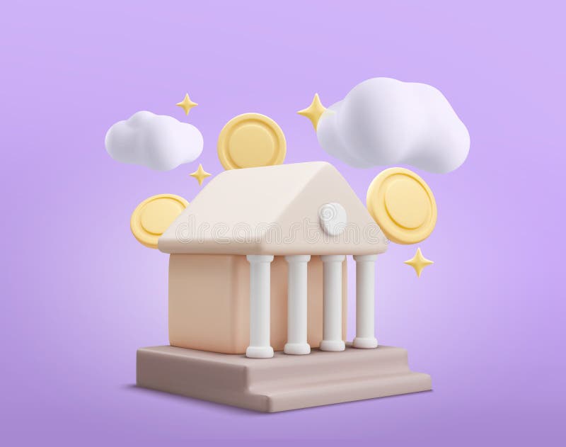 Vector 3D Court Building with Columns Front and Angled View Premises