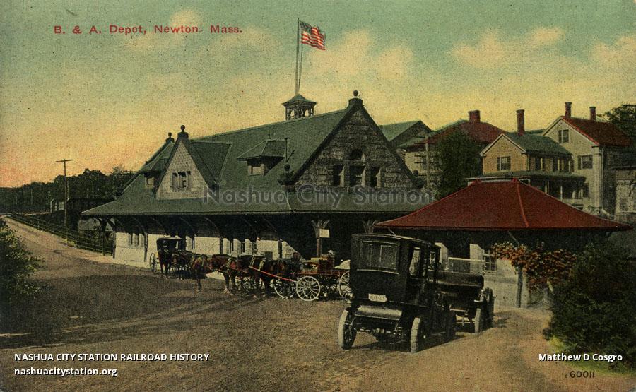 Postcard: Boston Albany Depot Newton Massachusetts Railroad History