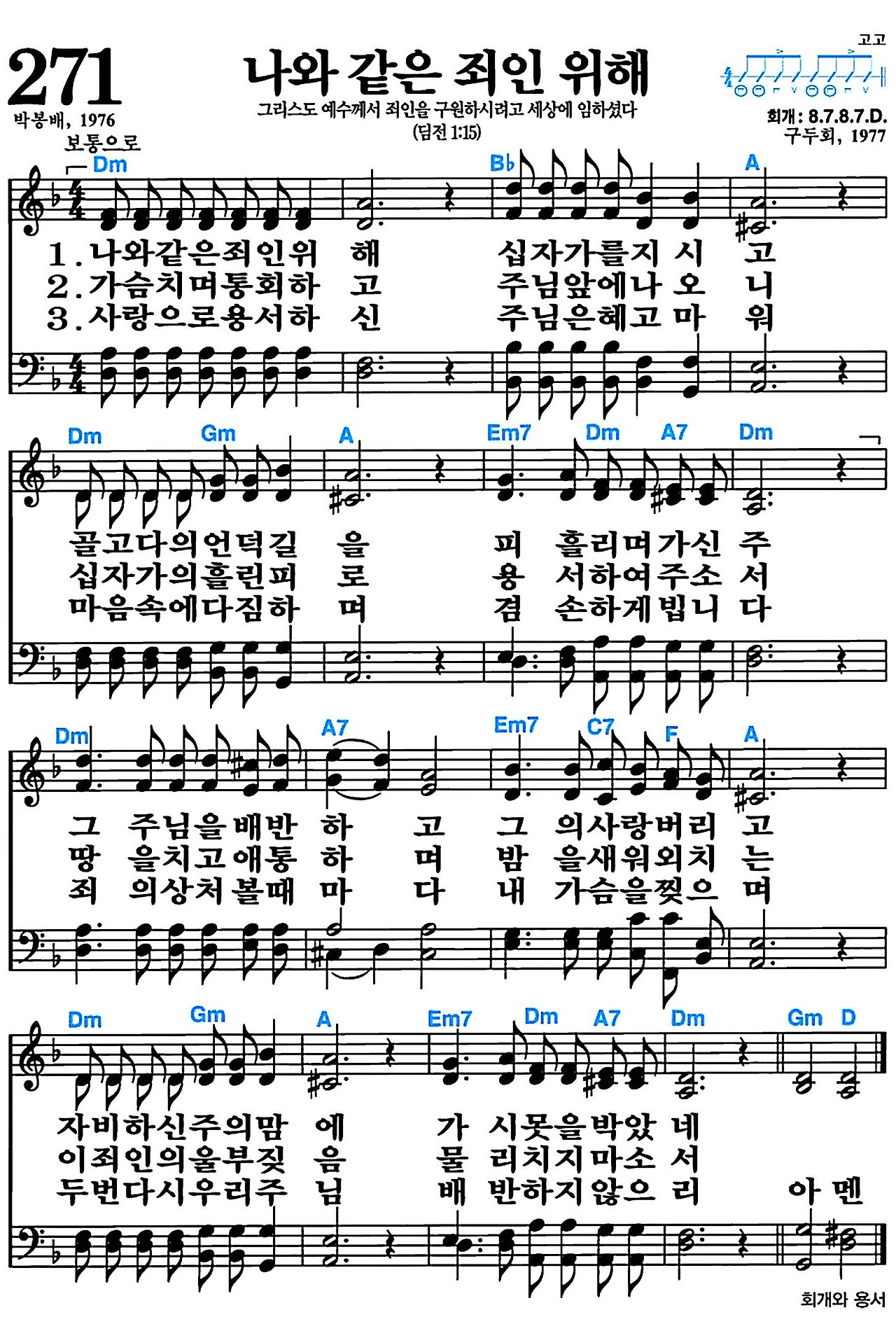 찬송가 271장 나와 같은 죄인 위해 #가사/악보/NWC/MP3 다운로드