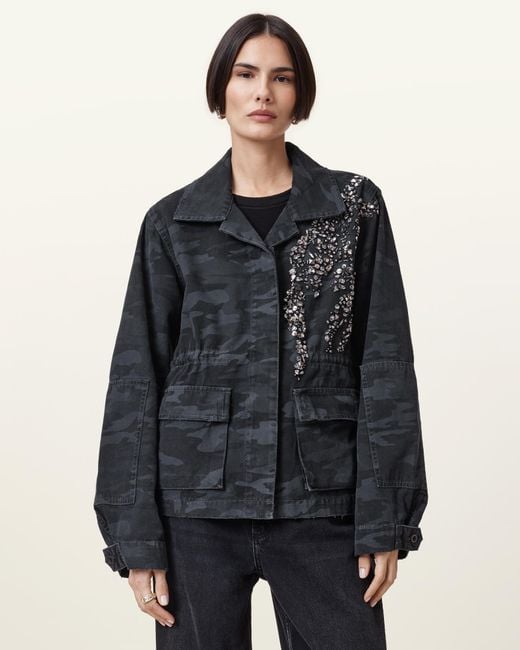 AllSaints Finch Camouflage Denim Jacket in Blue Lyst