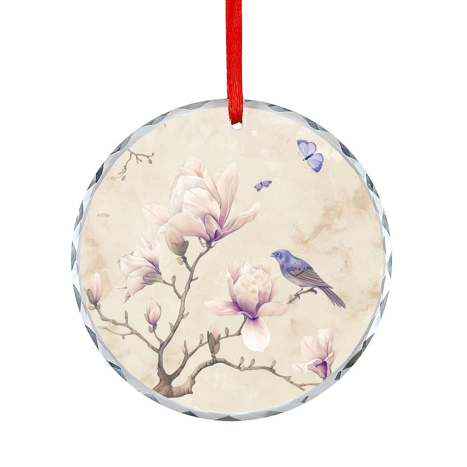 Magnolia Flower Blue Bird And Butterfly Xmas Ornament Xmas Tree