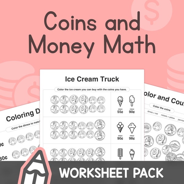 Money Math Worksheets for Kids Count Match and Spend Dollars