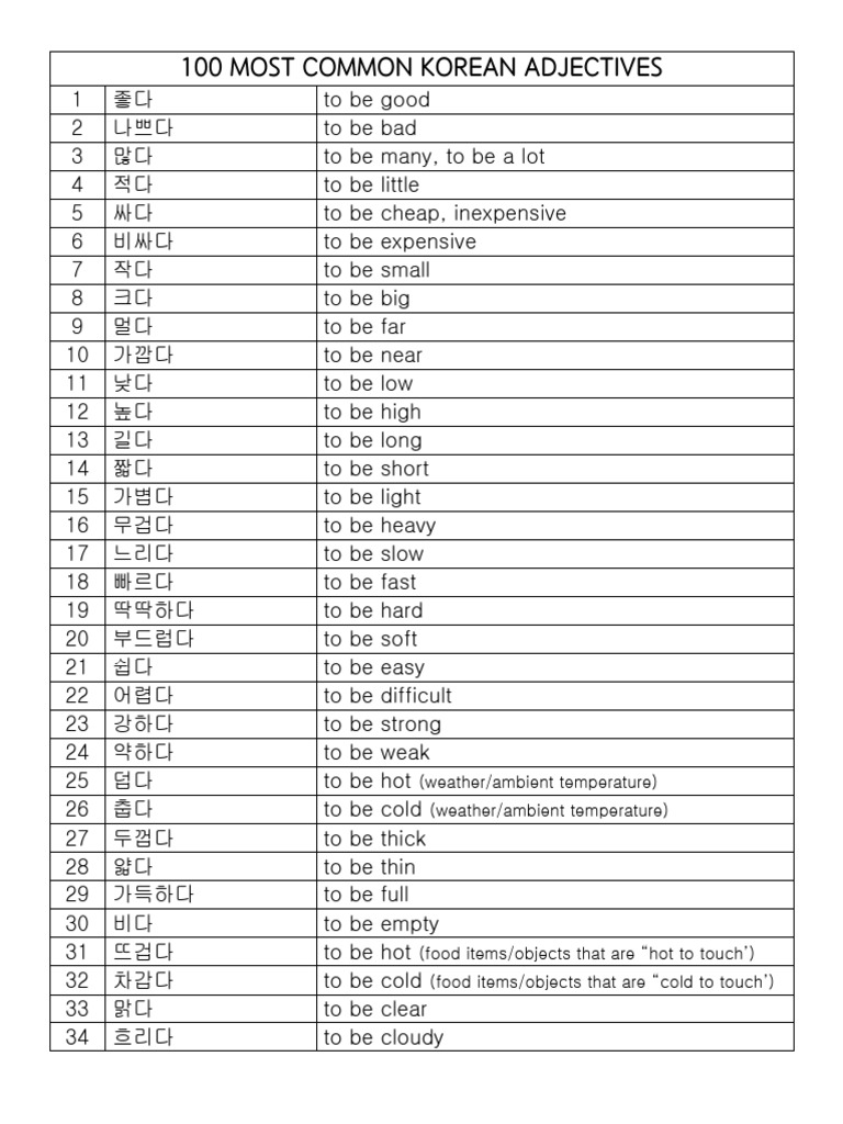100 MOST COMMON KOREAN ADJECTIVES PDF