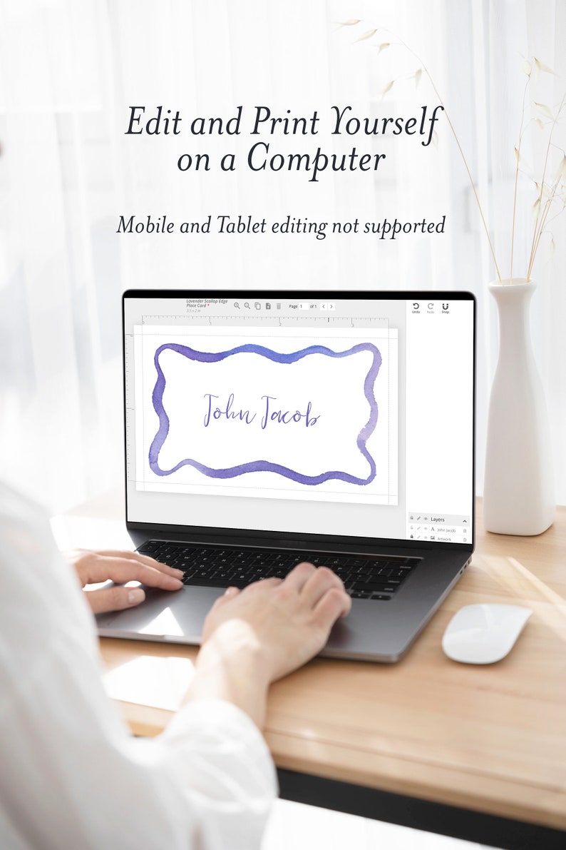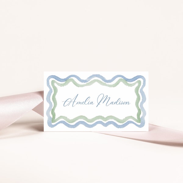 Watercolor Scallop Place Card Template Wedding Place Card Instant