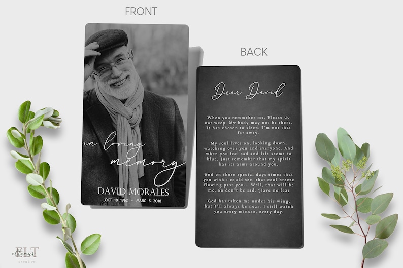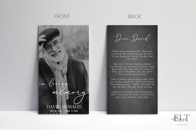 Funeral Prayer Card Template Photo Collae for Men L Memorial Prayer
