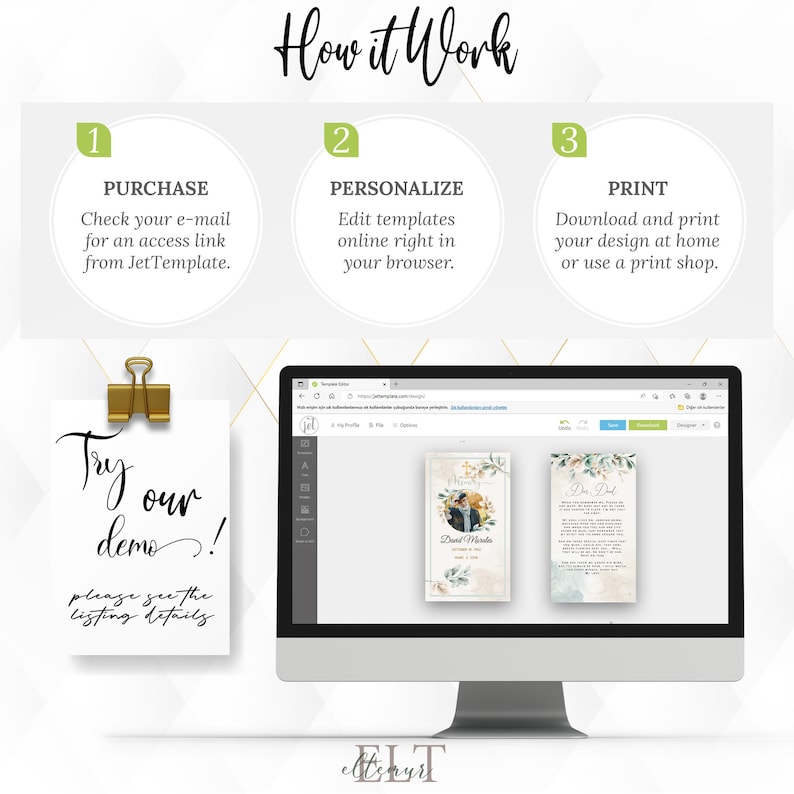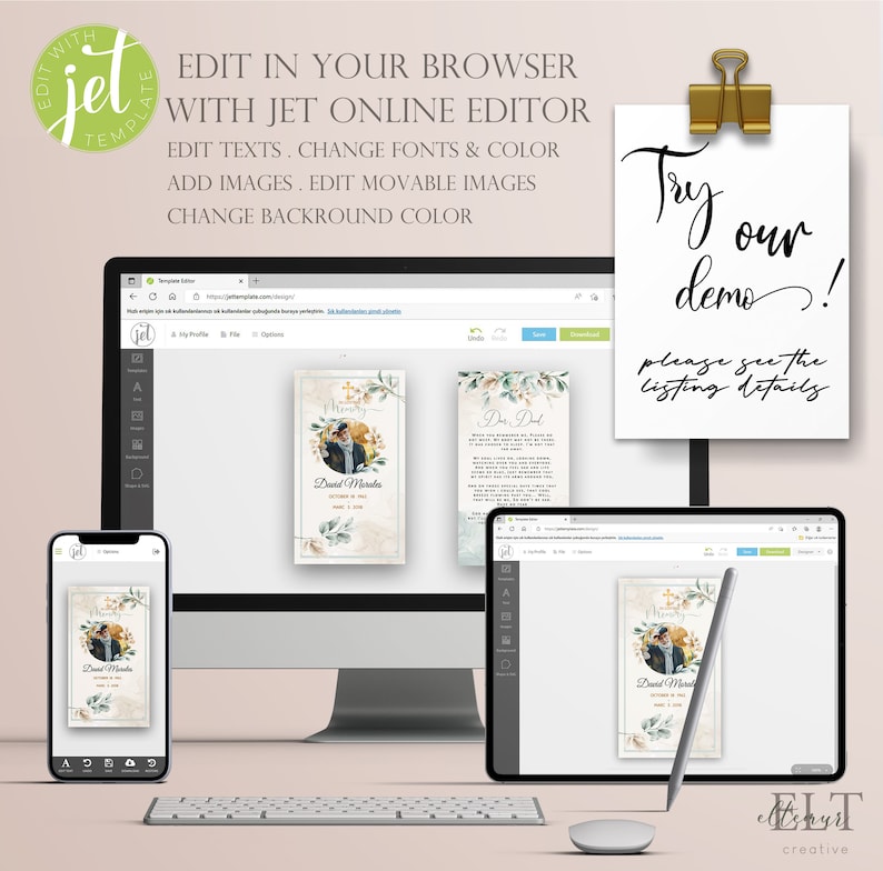 Funeral Prayer Card Template Greenery Leaves for Men Botanical