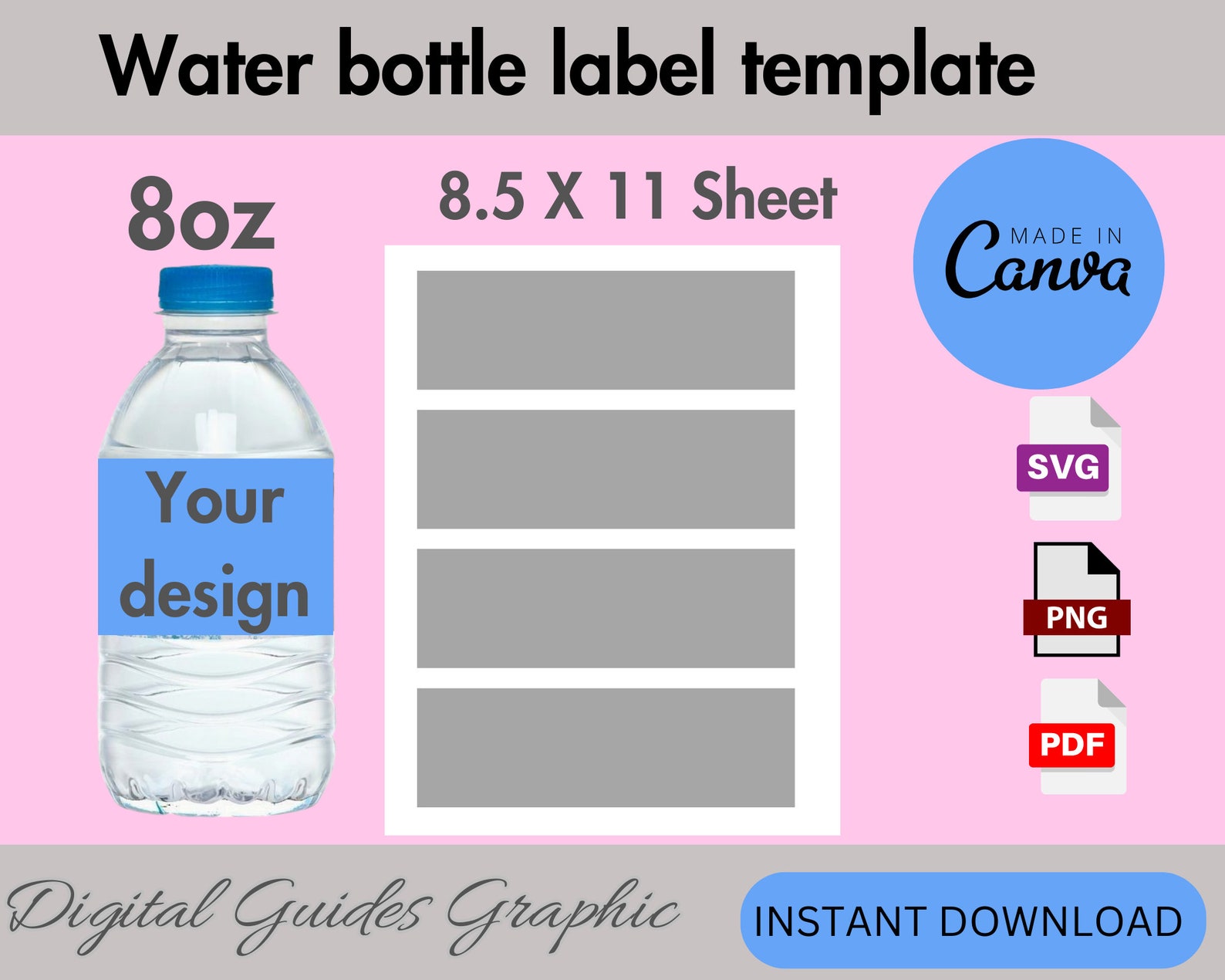 Template Cut File Water Bottle Digital Labels Diy File 2x8 Inches Each